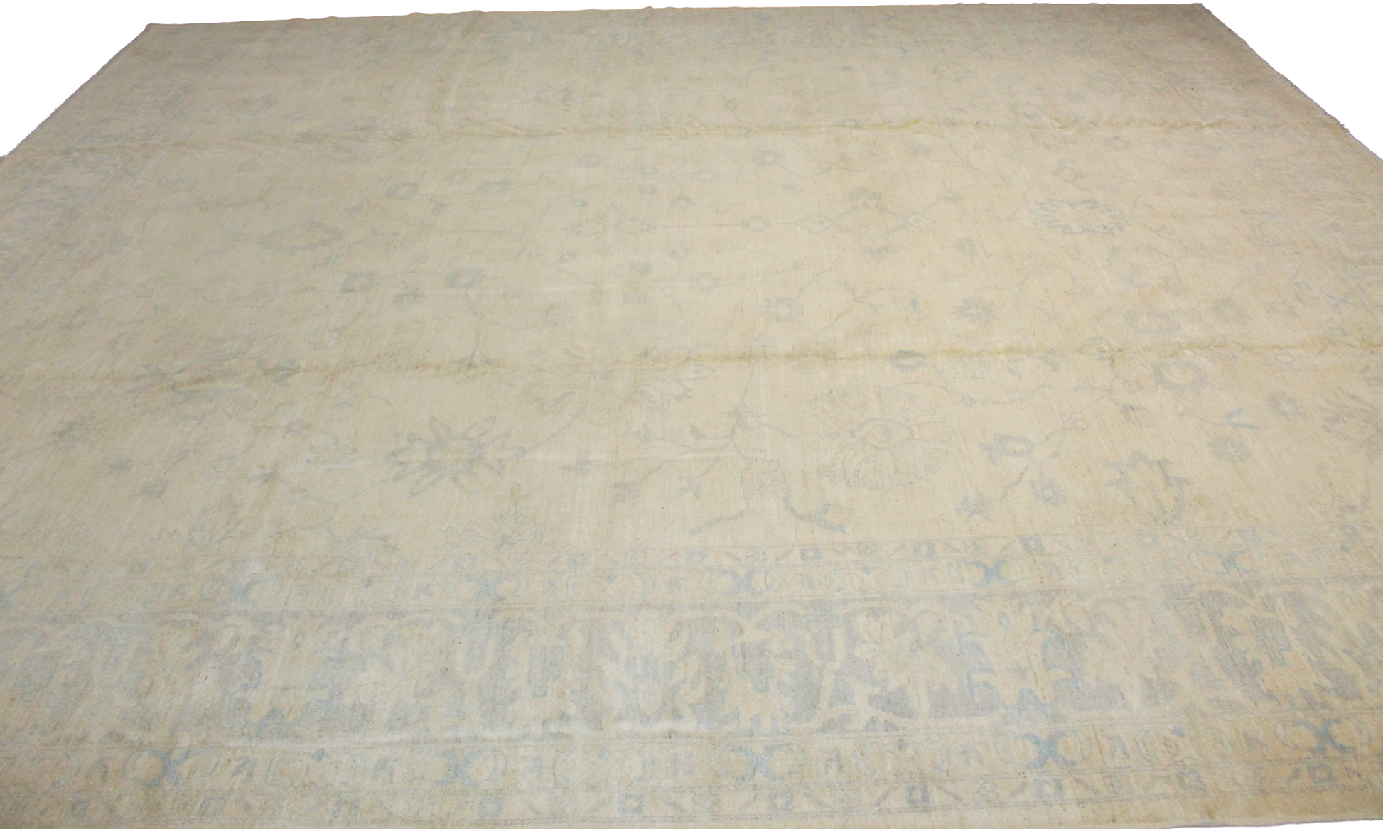 Its understated tones make it a versatile foundation for both traditional and contemporary interiors, providing softness without visual weight. The aged finish and delicate abrash enhance the sense of authenticity and quiet charm.