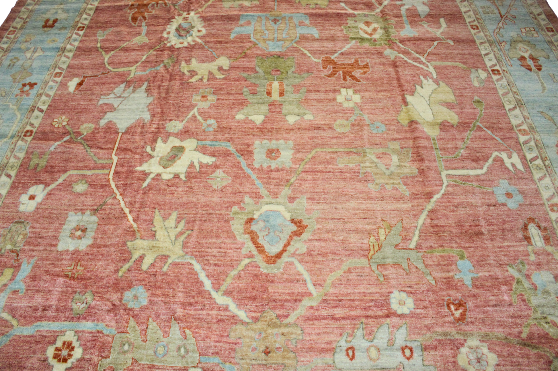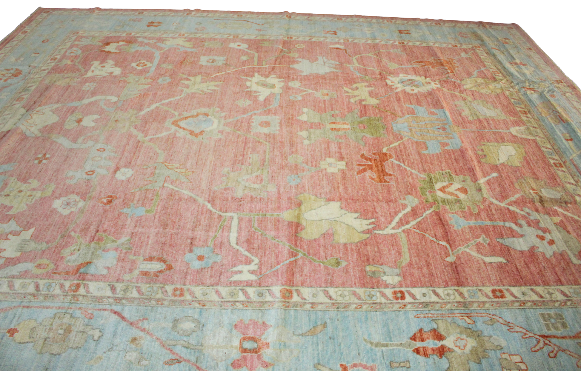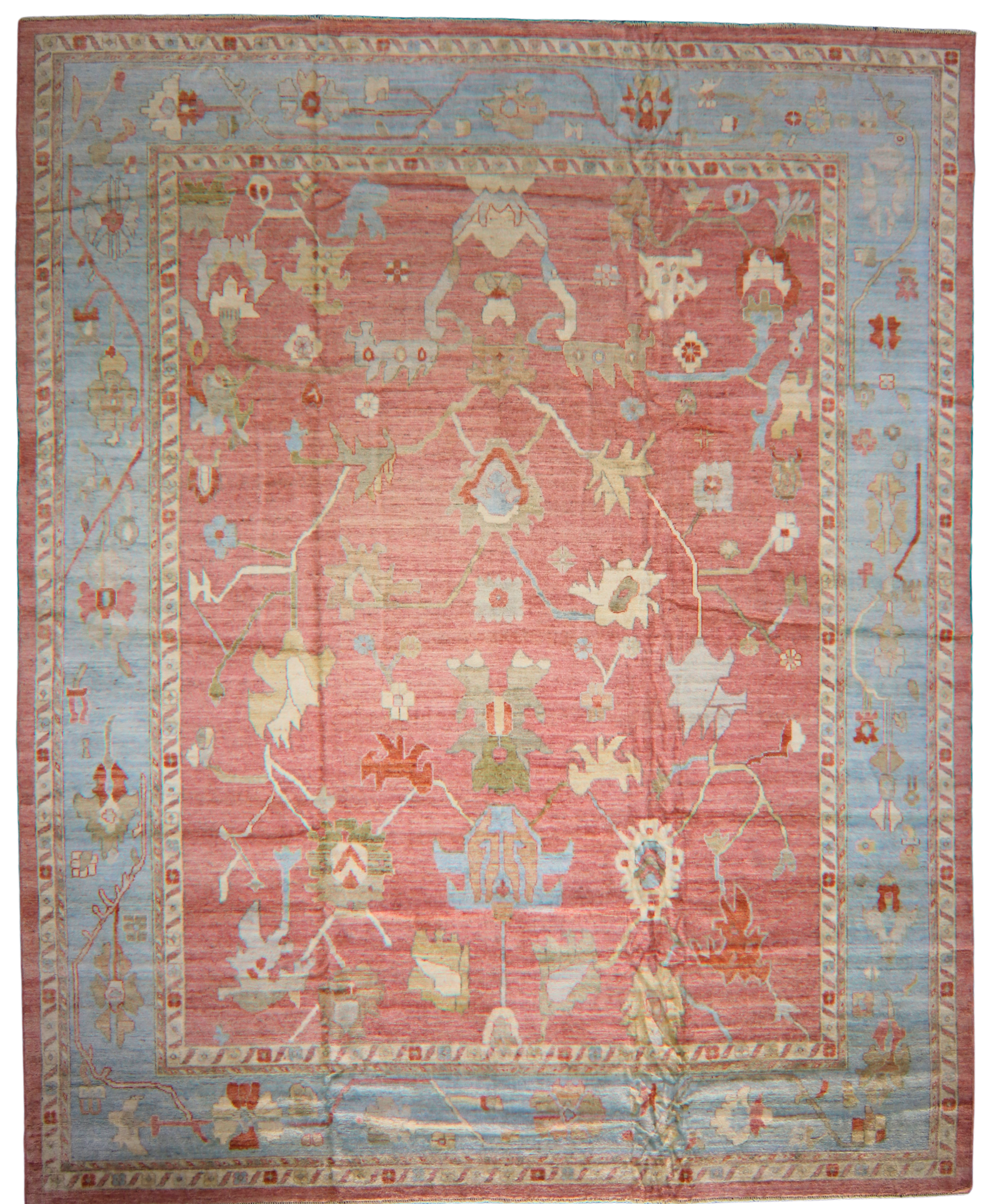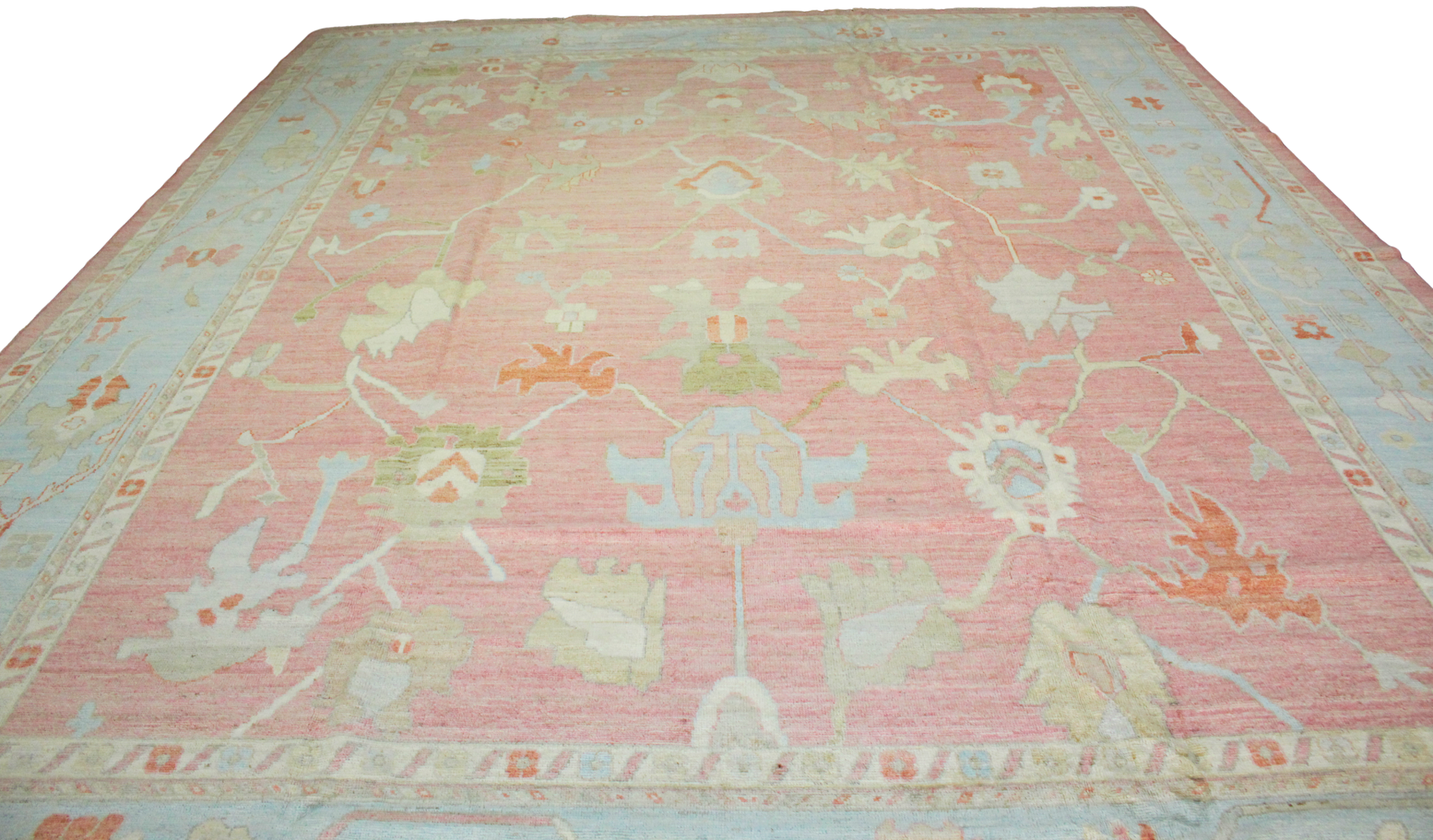 Sunset Reverie — Oushak Rug in Coral and Sky (14′8″ × 12′)