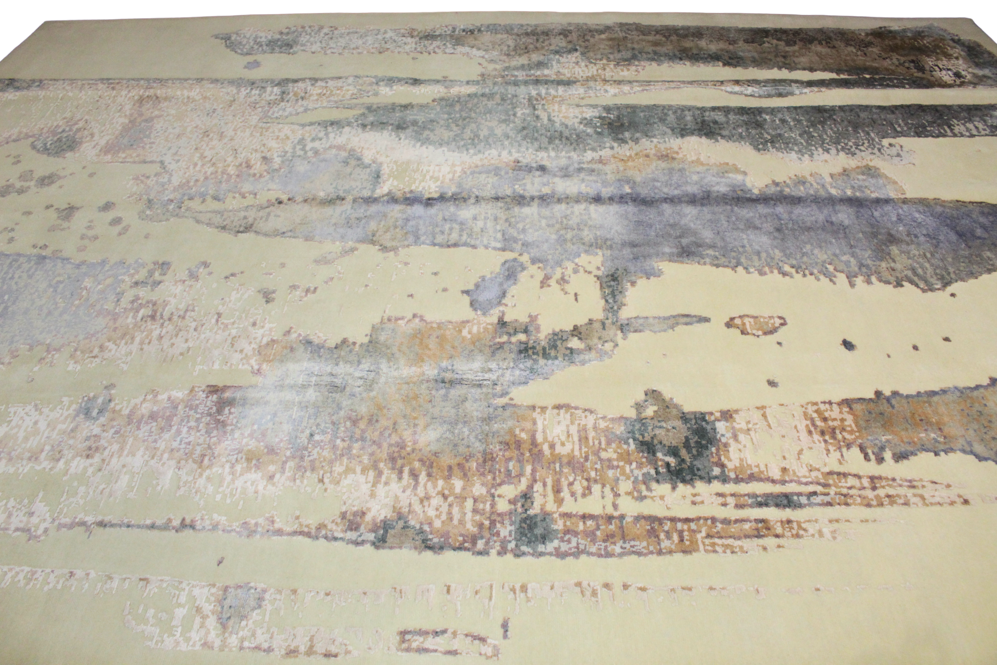Its visual drama is softened by masterful hand-knotting in premium wool, creating a plush and textural surface. Perfect for minimalist or art-driven spaces, this piece blurs the line between function and expression — a rug that feels like a contemporary painting underfoot.