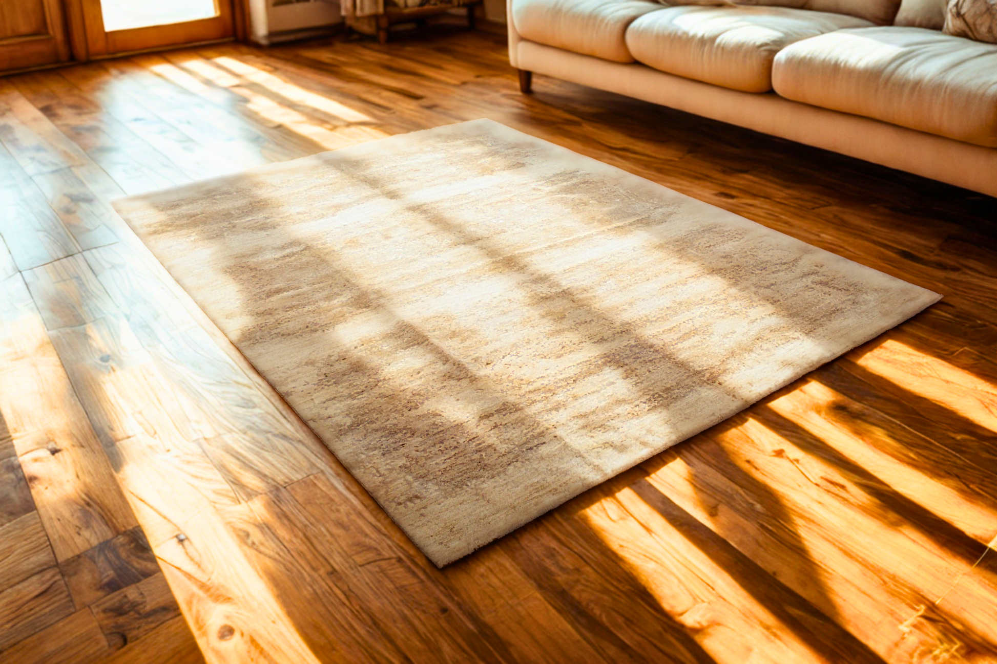 Hand-knotted in Pakistan using premium wool, the rug offers a plush yet resilient foundation ideal for contemporary homes. Its muted tones and minimalist geometry make it a perfect fit beneath a dining table, in a serene living room, or in a modern bedroom setting.