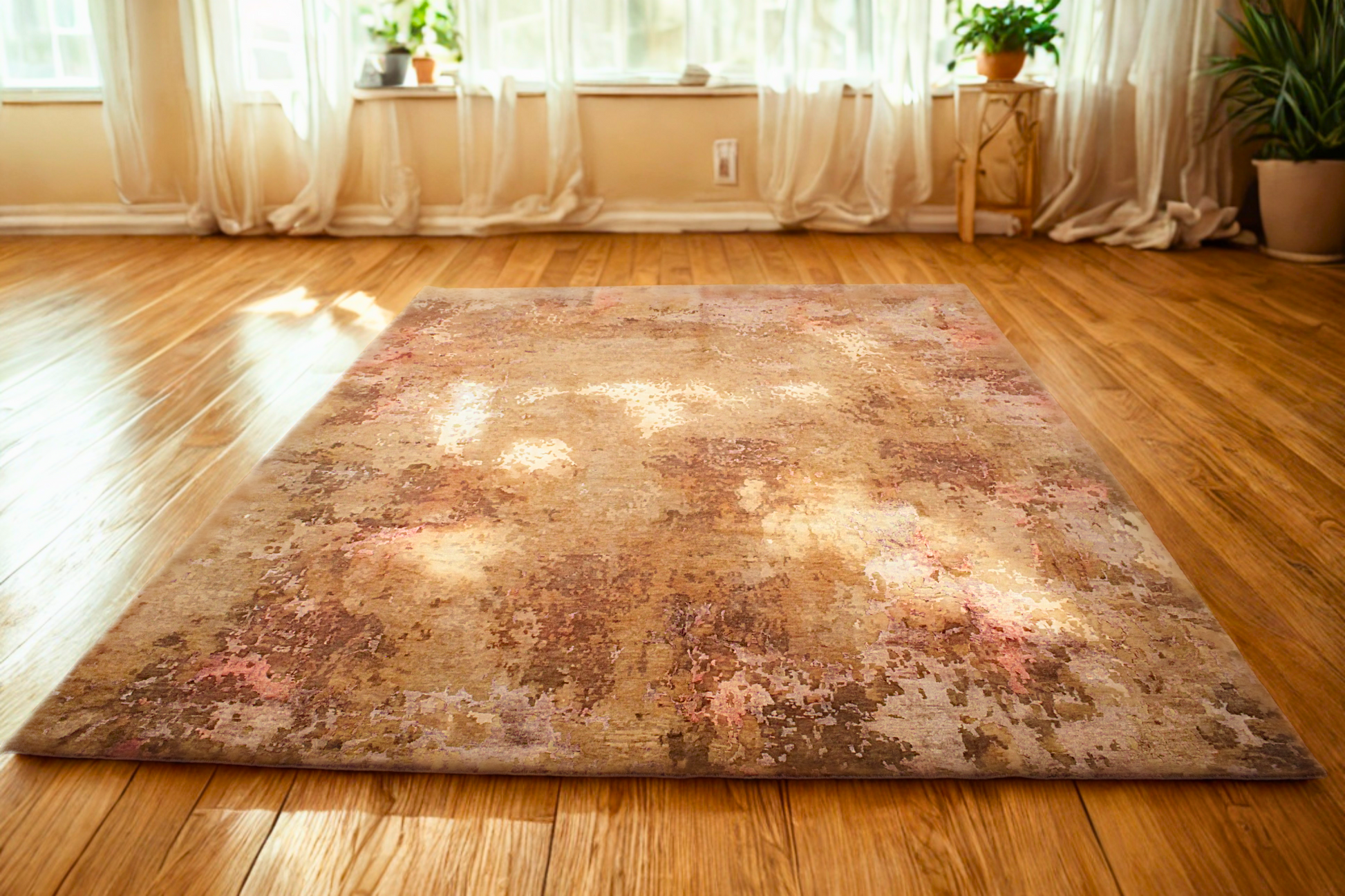 Abstract Depth in Gentle Earthtones — Modern Nepalese Rug (10.2 × 13.10 ft)