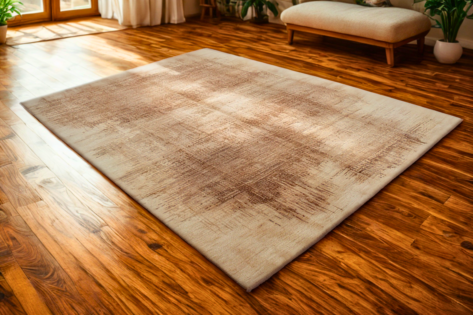 Crafted from hand-knotted wool, this rug delivers both softness and durability. The horizontal composition works particularly well under coffee tables, in contemporary living rooms, or in open-plan workspaces needing grounding without overwhelming the space.