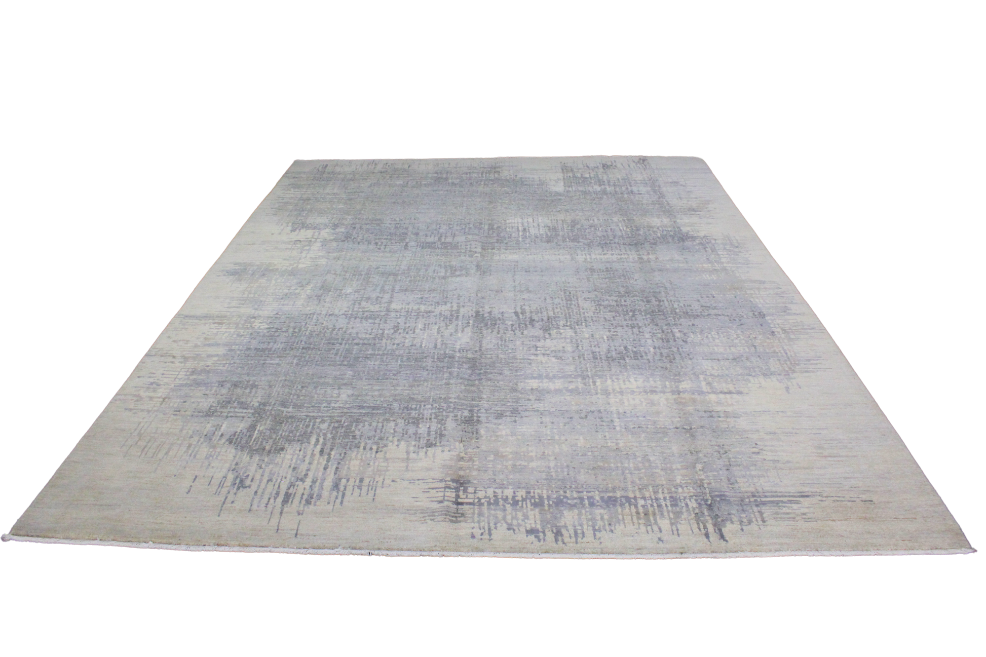 This sleek and balanced modern rug from Pakistan (10.3 × 7.11 ft) plays with contrast in a refined and artistic way. Its layered texture of grayscale brush-like striations creates a dynamic visual rhythm — like an abstract pencil sketch frozen in time. A perfect balance of raw energy and quiet neutrality.