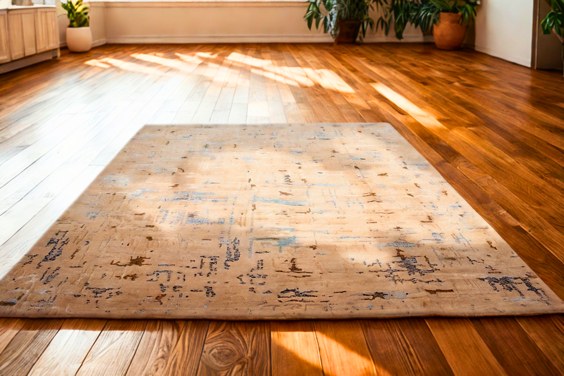 Meticulously hand-knotted in wool, the rug’s generous size makes it a powerful yet understated centerpiece for spacious living rooms, dining areas, or contemporary great rooms.
