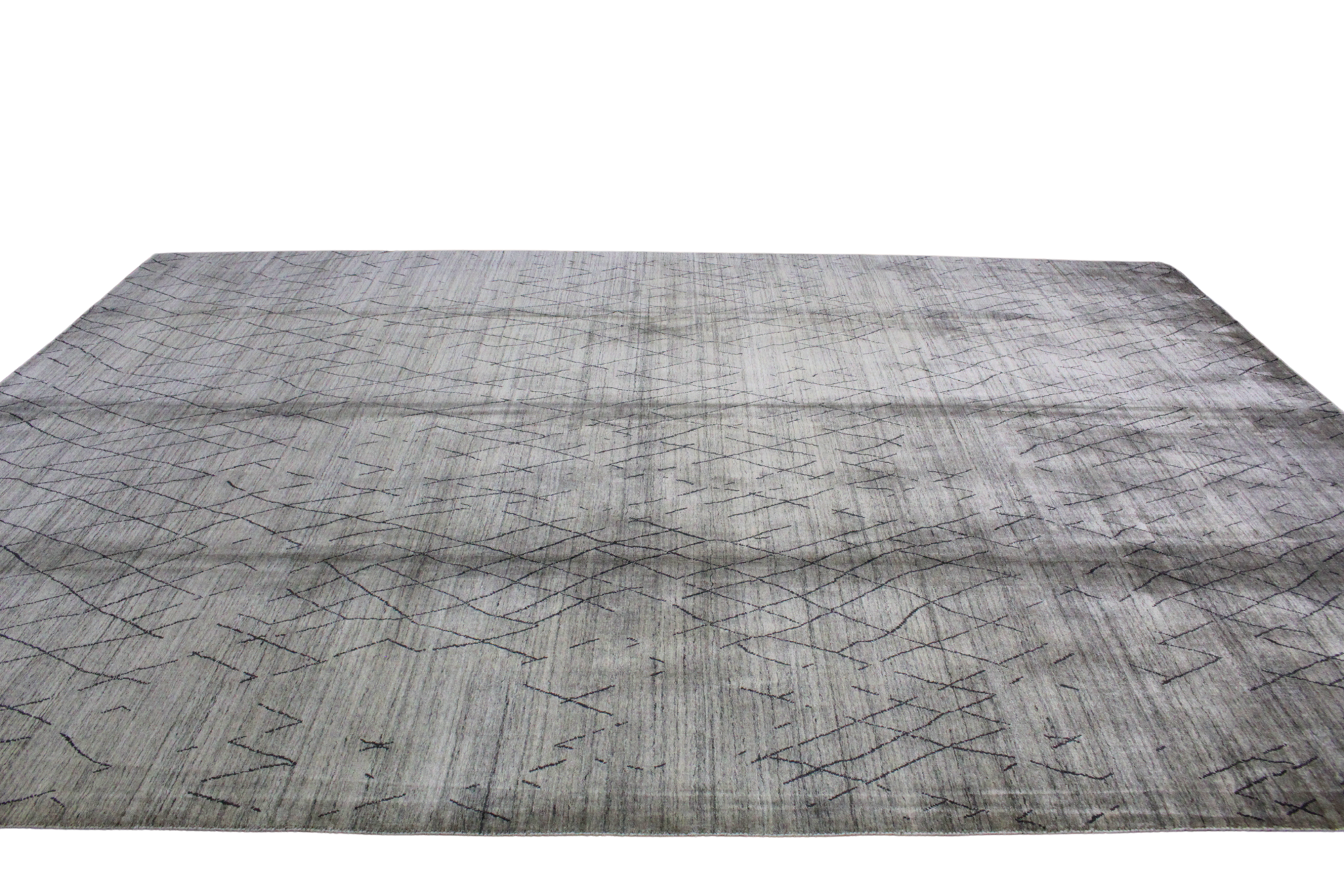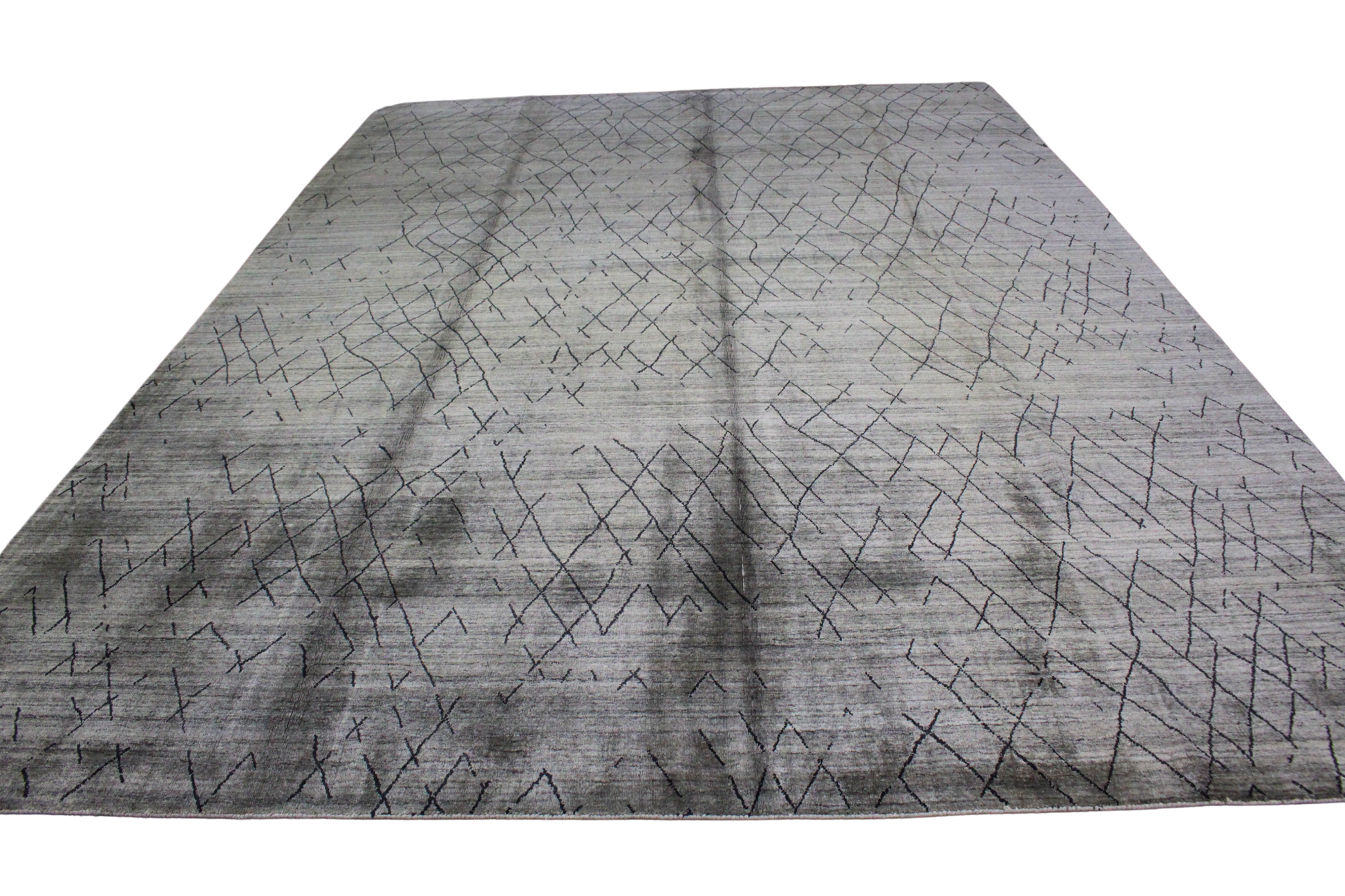 Geometric Subtlety — Graphite Gray Modern Rug from Nepal (9.10 × 13.10 ft)