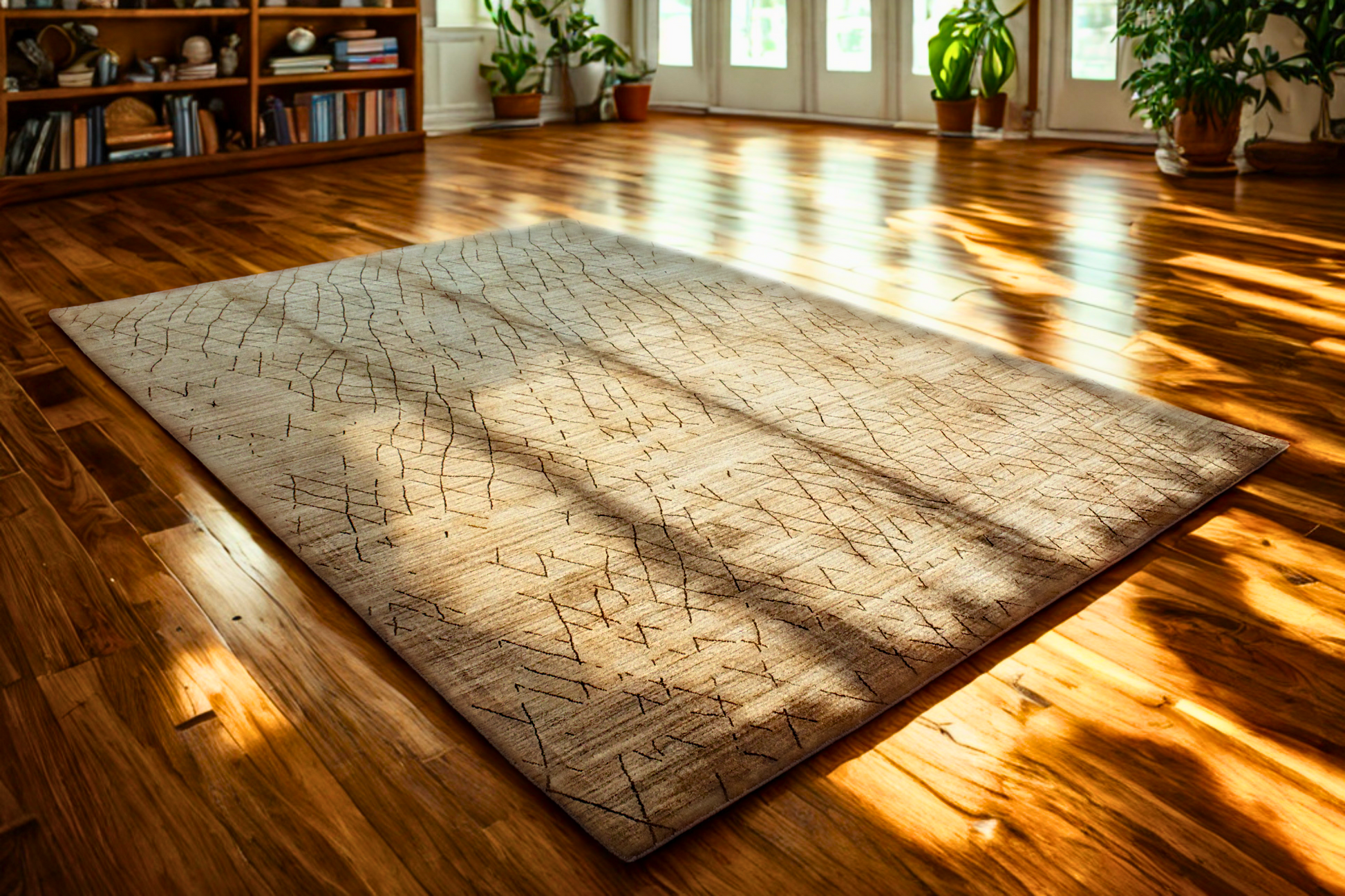 Hand-knotted in wool, the understated palette allows the geometry to shine without dominating a room. Ideal for a minimalist living space, modern office, or gallery-like interior where clean structure and quiet elegance are key.