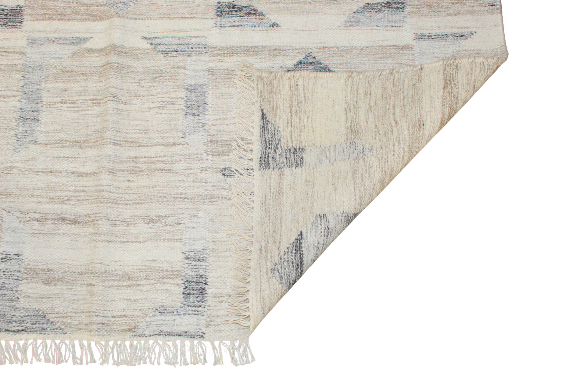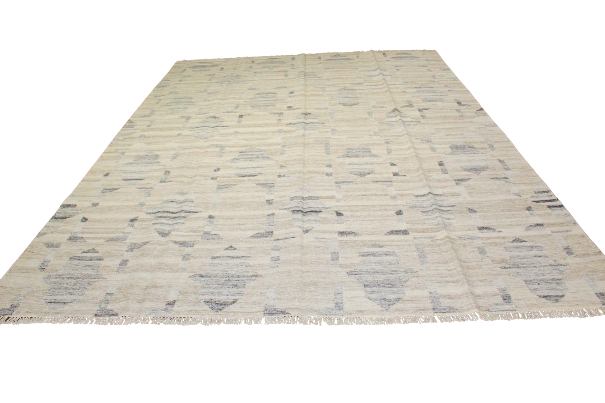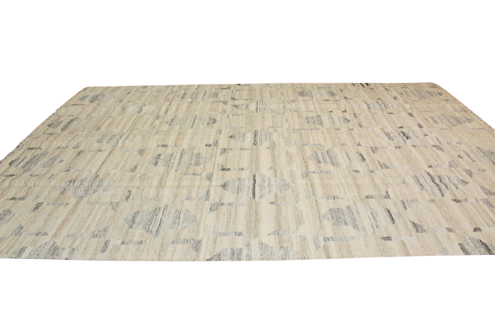 Muted Geometry – Contemporary Afghan Kilim in Stone & Sand (9.10 x 13.8 ft)