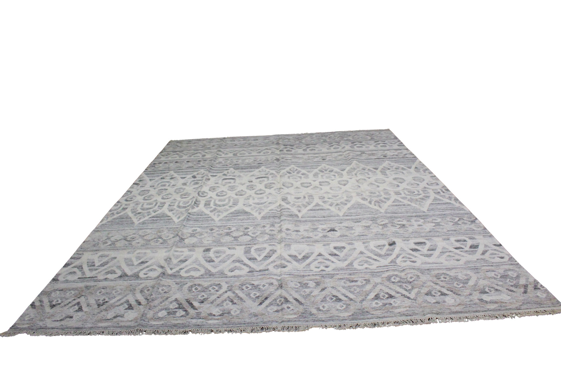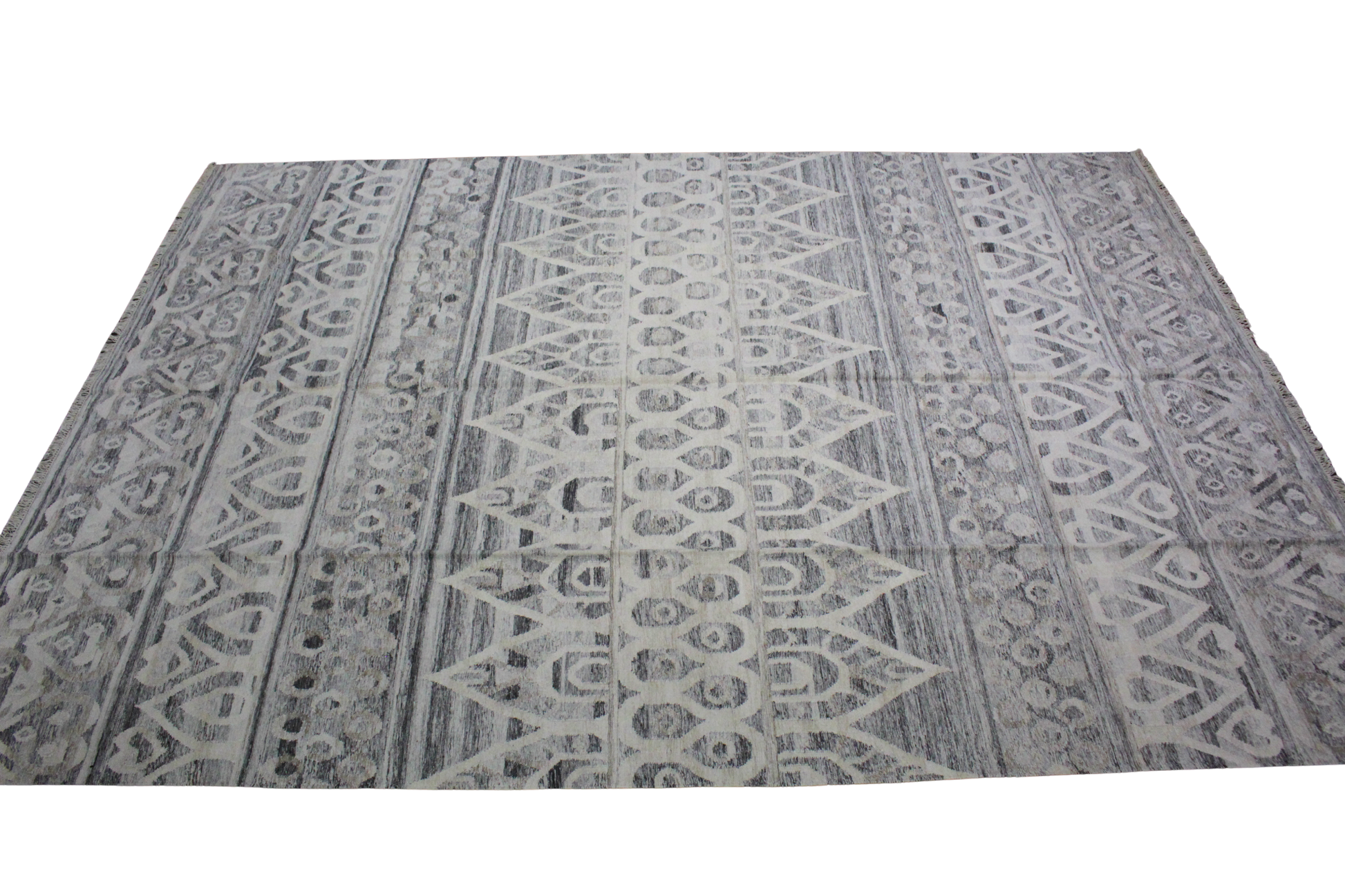Patterned Silence — Afghan Kilim in Charcoal & Cream (10′ × 14′)