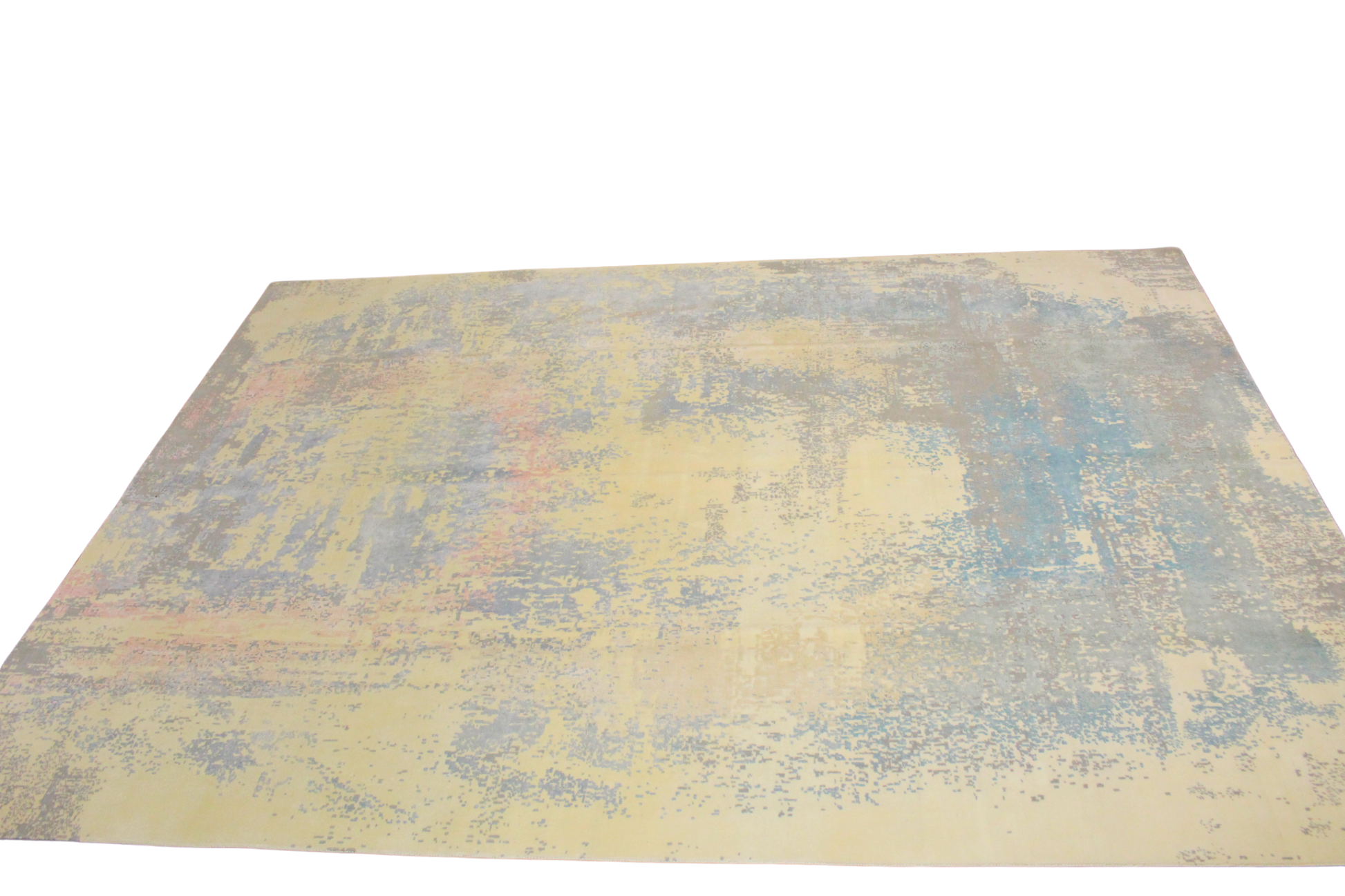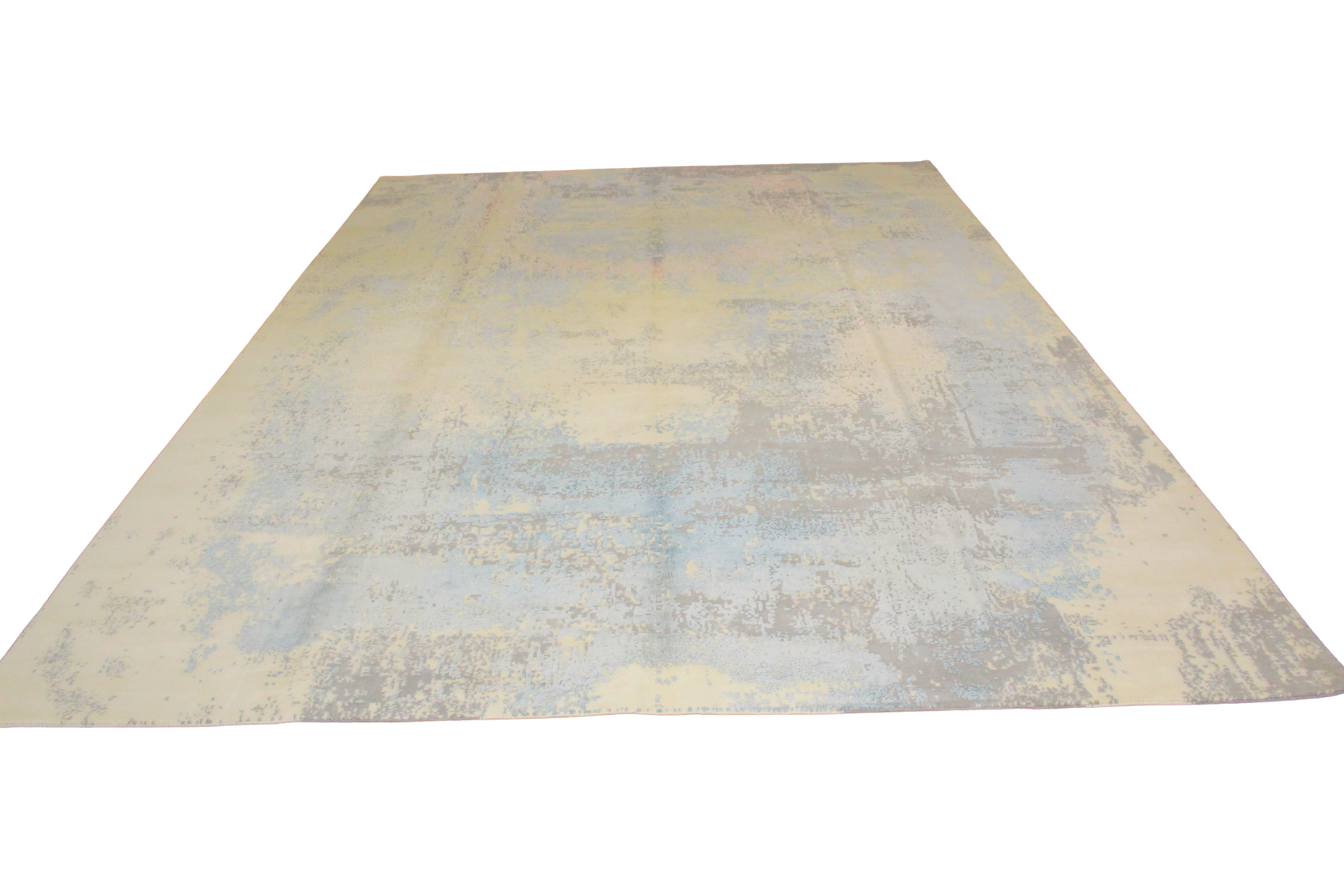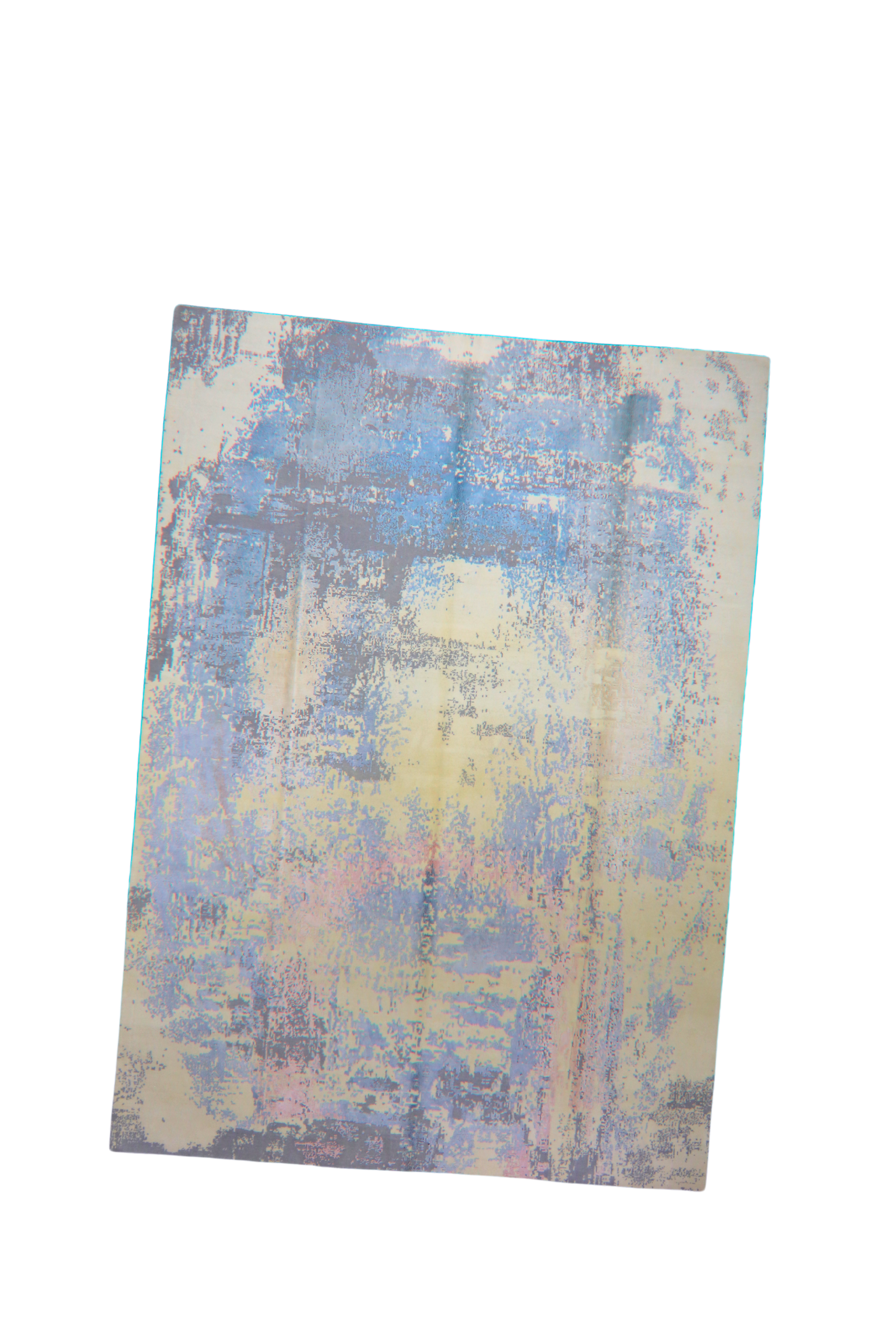 This ethereal modern Afghan rug (9.11 × 13.11 ft) evokes the feeling of a dream in motion. Faded swaths of sky blue, creamy ivory, lavender, and pale rose ripple across the wool field in a painterly abstract composition. Its serene palette and washed effect lend a sense of tranquility, making it a perfect anchor for minimalist, modern, or transitional interiors.