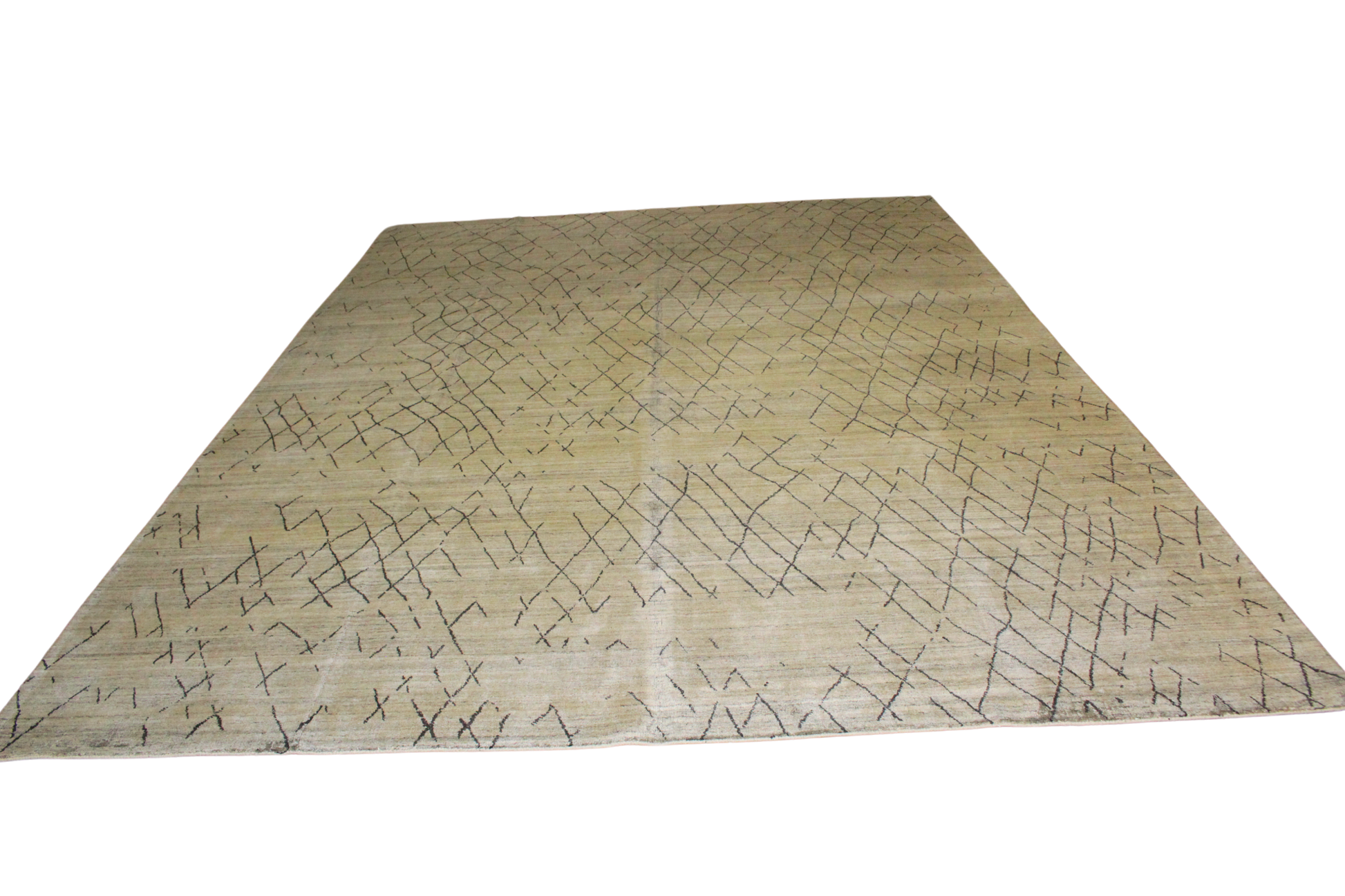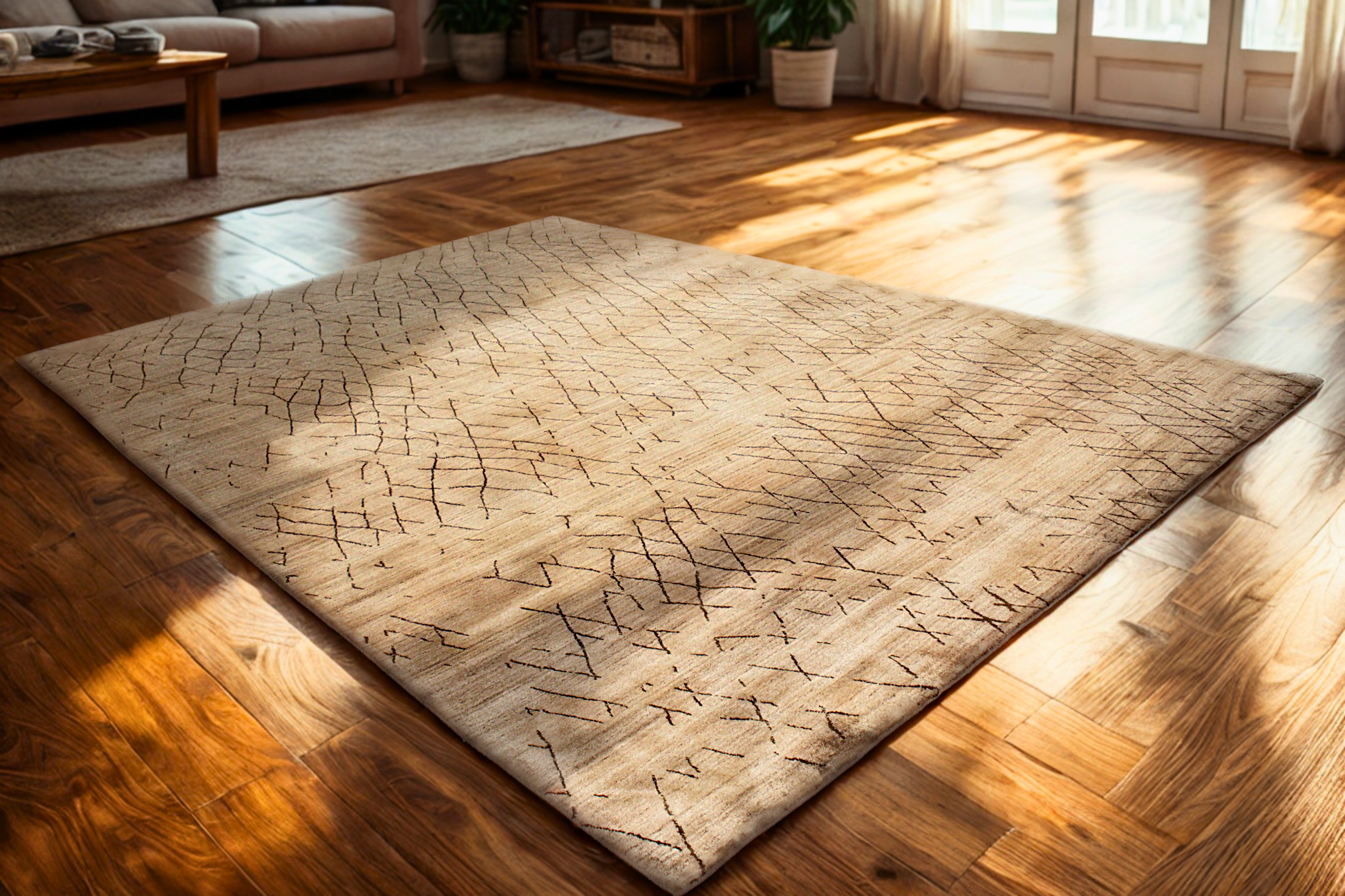 Earthy Geometry — Hand-Knotted Modern Rug from Nepal (9.10 × 13.11 ft)