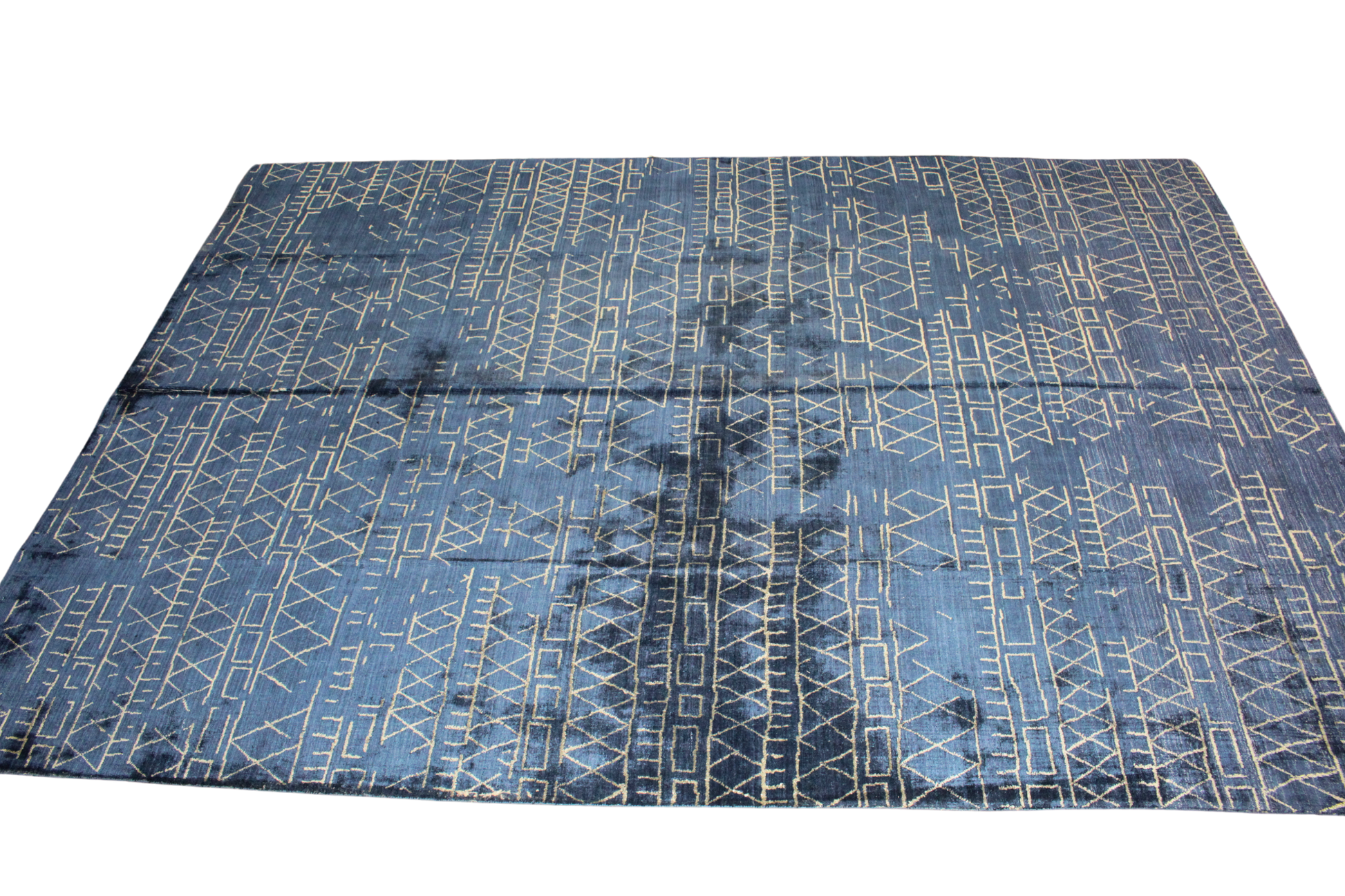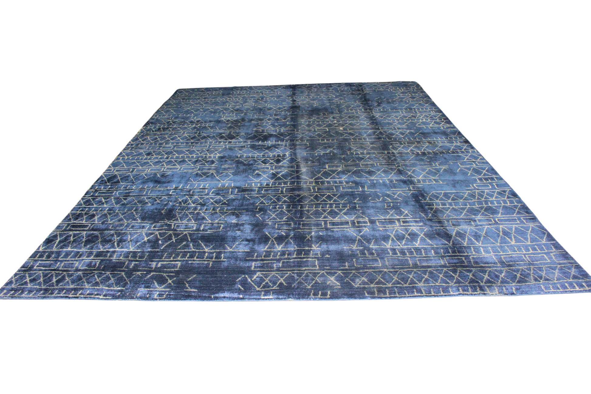 Bold Geometry, Deep Elegance — Hand-Knotted Modern Rug from Nepal (9.10 × 13.10 ft)