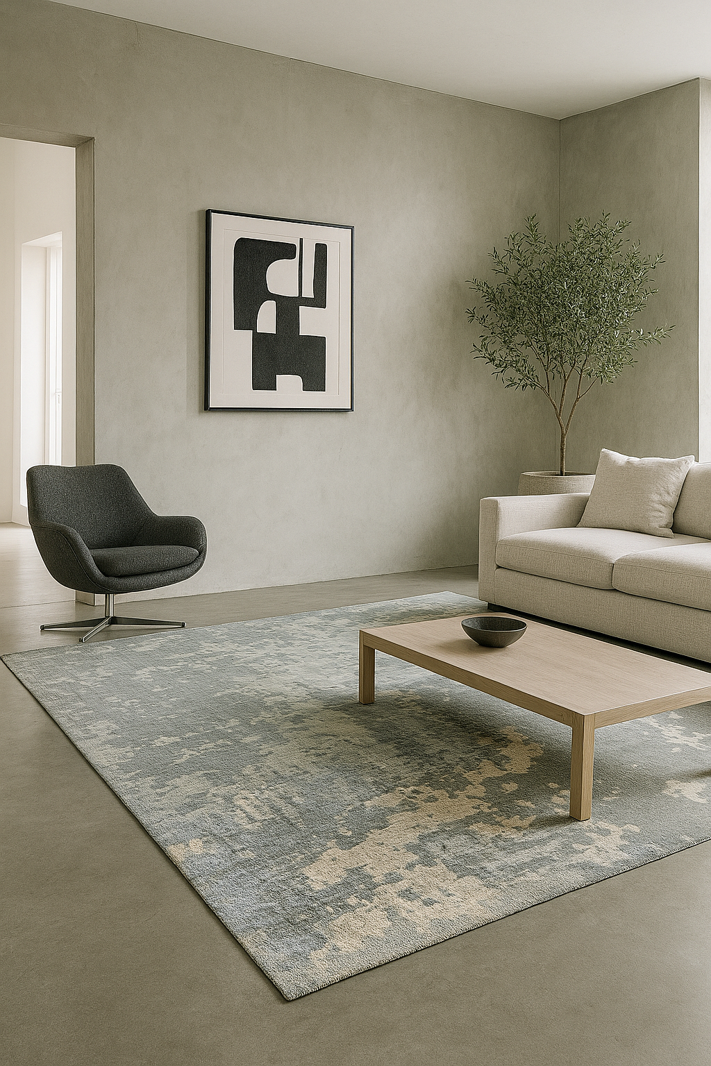 Its soft wool surface enhances the peaceful ambiance, ideal for anchoring a spacious living room, bedroom, or reading nook with elegance and ease. The design feels organic and contemporary, perfect for pairing with clean-lined furniture and natural materials.