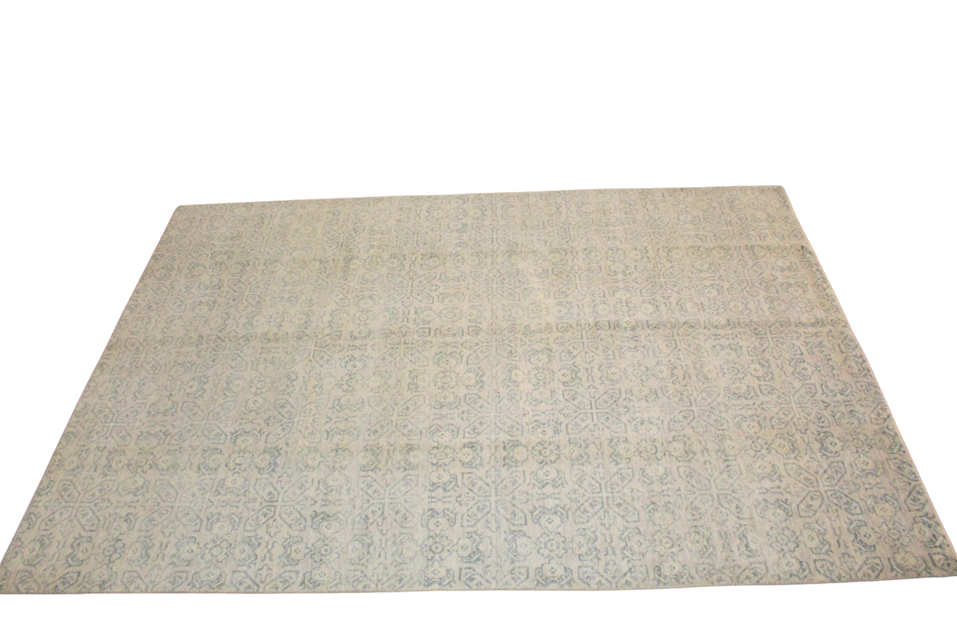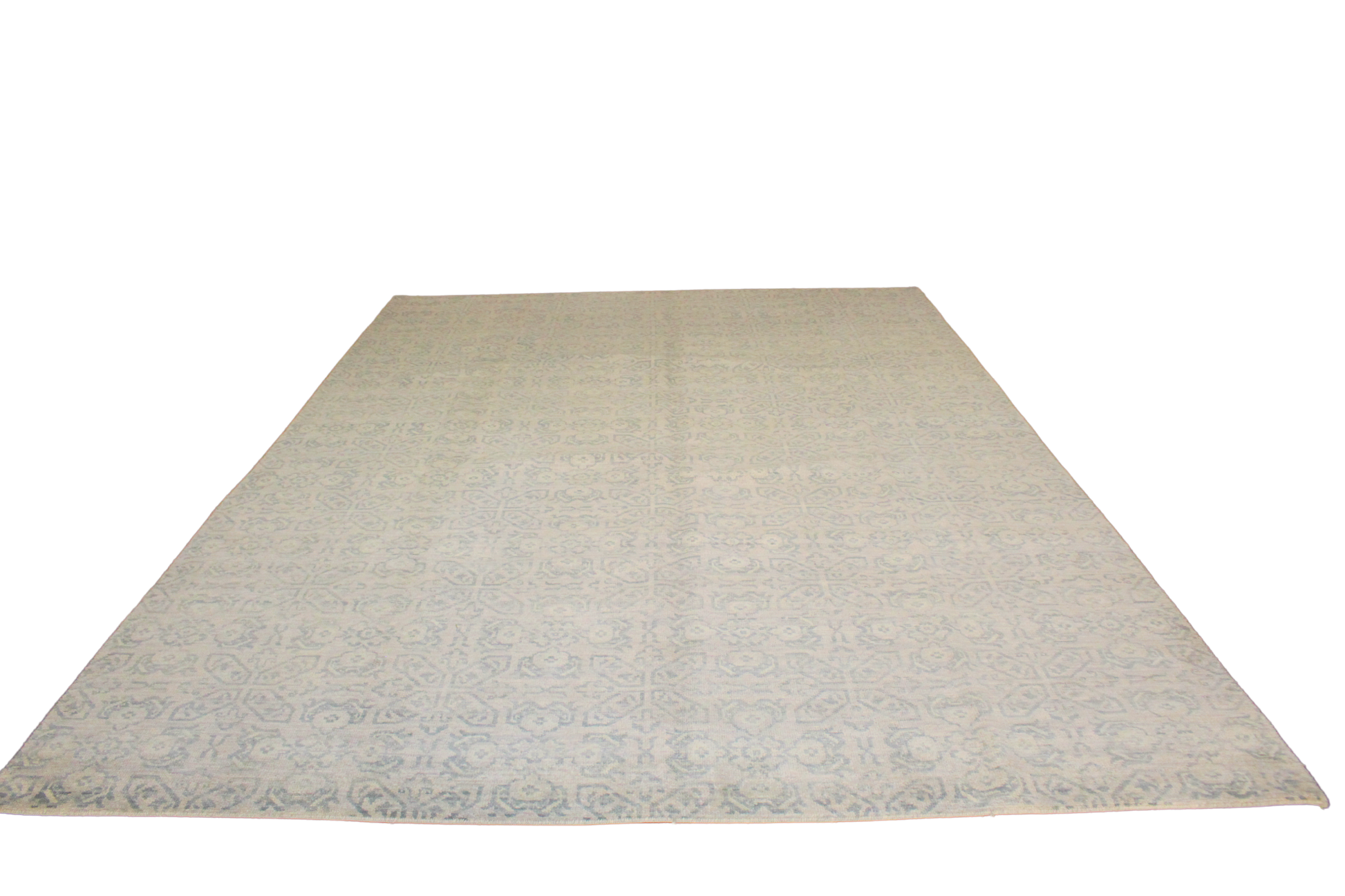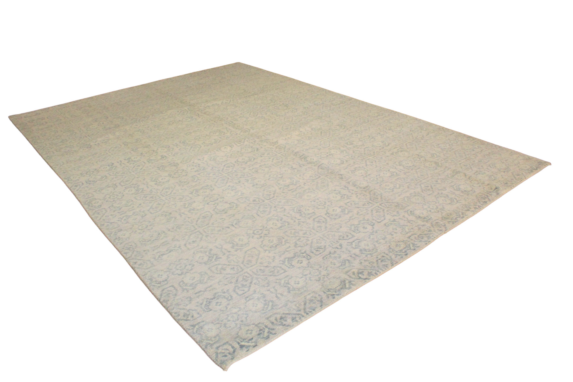 Hand-knotted in wool, this rug offers both fine texture and visual calm, ideal for softening a large formal room or bringing grace to open contemporary layouts. Its cool-toned hues work especially well with neutral furnishings, light wood accents, or crisp white walls.