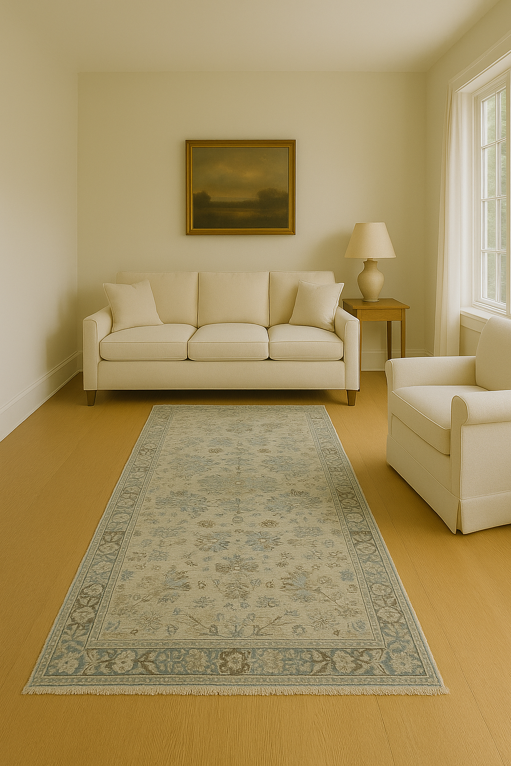 The proportions make it versatile — ideal for layering under a console in a wide hallway, grounding a sitting nook, or accentuating a bedroom side space. Its neutral tone palette works beautifully with both modern and classical interiors, bringing a sense of calm and aged elegance wherever it’s placed.