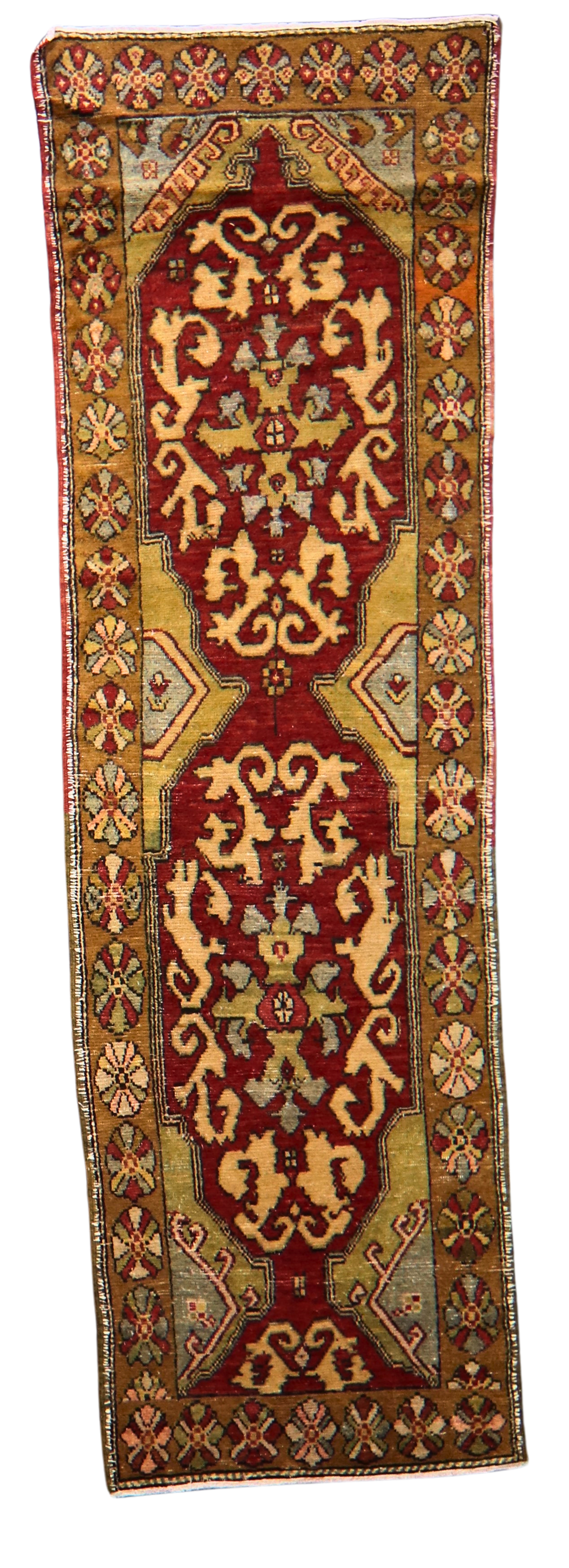 Regal Tradition — Antique Turkish Oushak Runner in Crimson and Gold (3 × 13.7 ft)