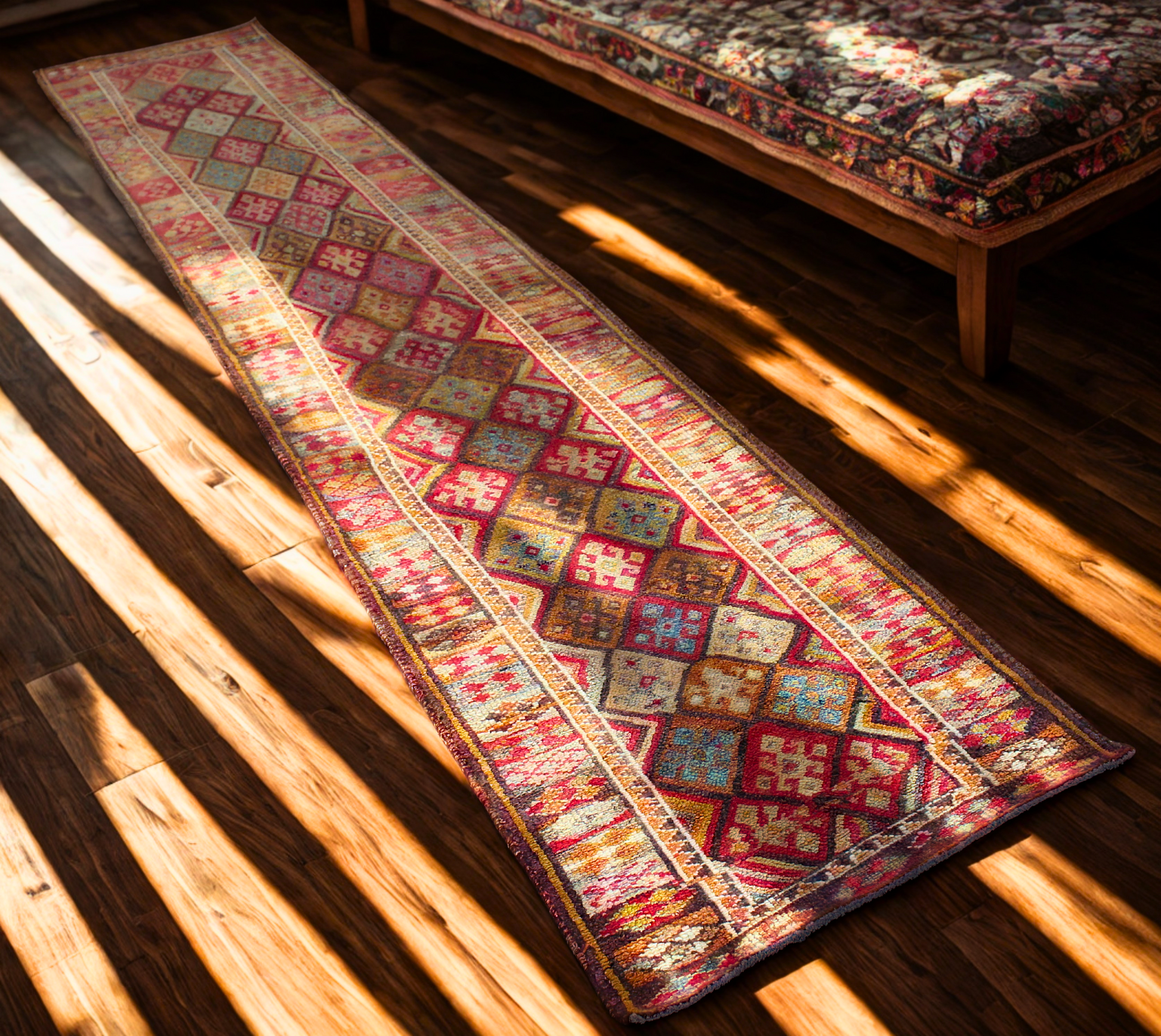 This piece brings a dynamic presence to narrow spaces, hallways, or layered along stairwells — offering instant vintage soul and warmth underfoot.