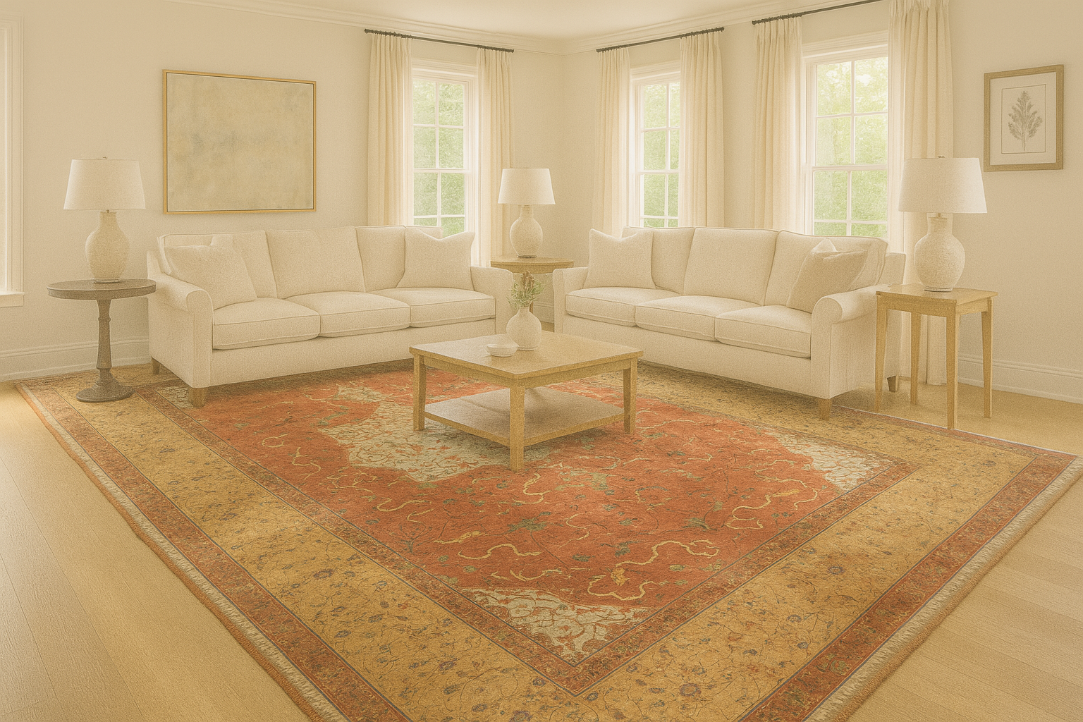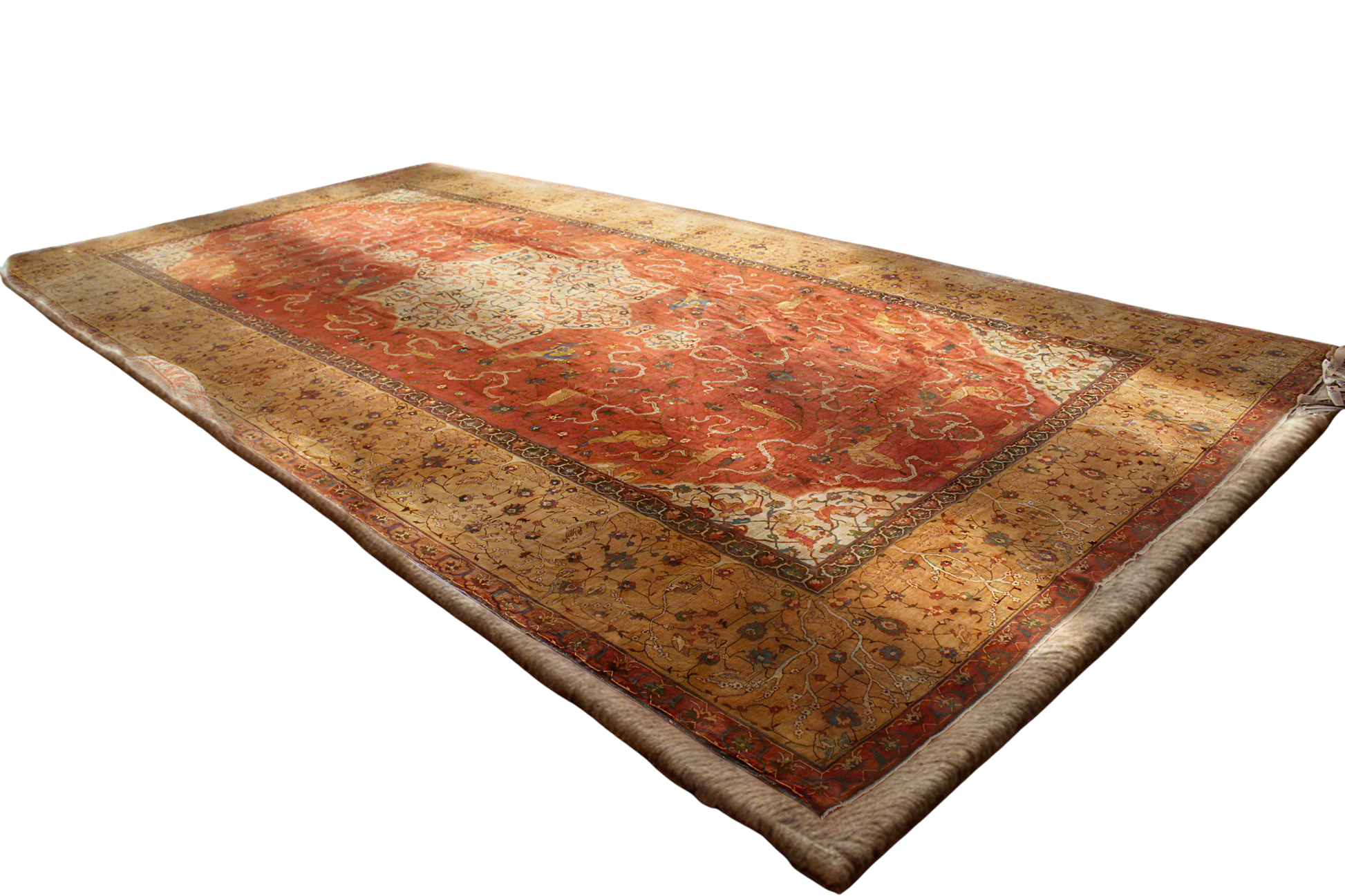 Woven entirely from fine wool, this piece reflects centuries-old Persian design tradition reinterpreted by Indian weavers at a colossal scale. It’s an heirloom-worthy centerpiece for grand halls, stately ballrooms, luxury hotels, or collectors seeking a statement of timeless splendor.