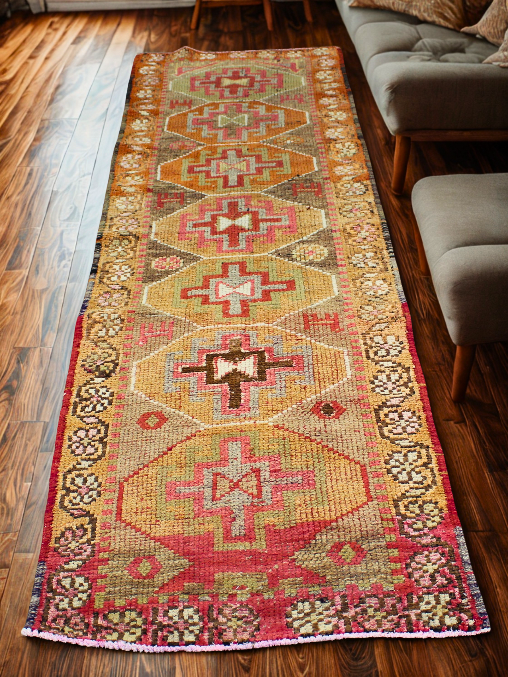 Vintage Bohemian Charm — Oushak Runner from Turkey (2.9 × 7.7 ft)