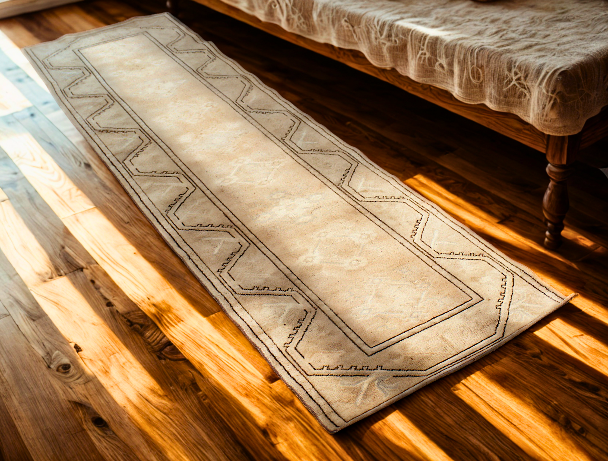 Whisper of Cool Elegance — Oushak Runner (2.9 × 9.3 ft)