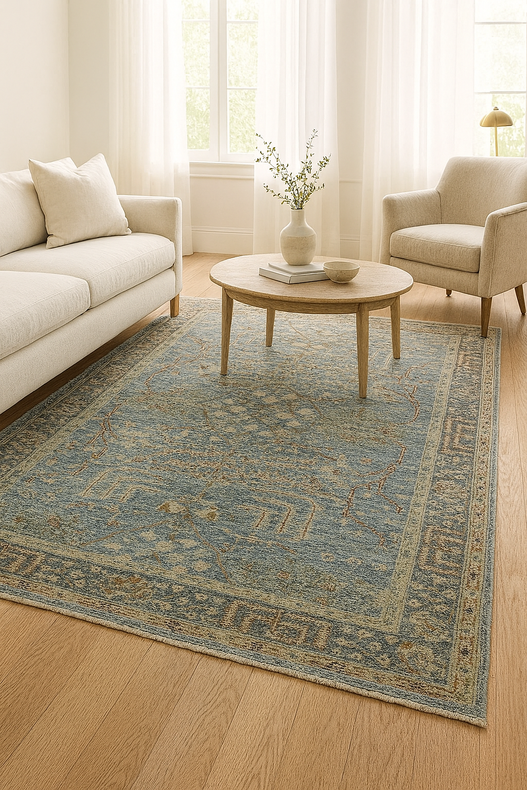 Whether placed beneath a coffee table, beside a bed, or as the centerpiece of a reading nook, this Aryana rug brings calm and complexity in equal measure.