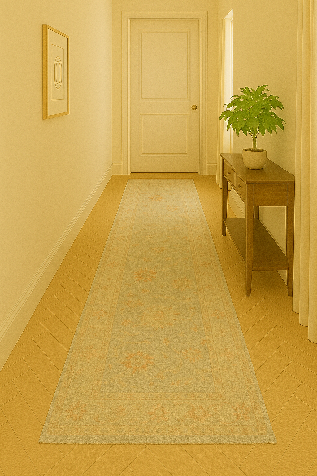 Its gently distressed, vintage-inspired look is ideal for high-impact areas like gallery halls, loft corridors, or even behind a long sectional in a great room.