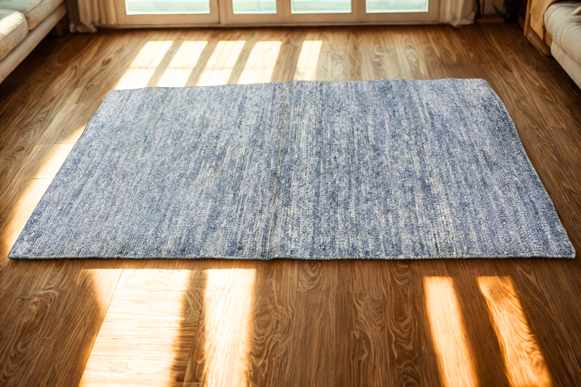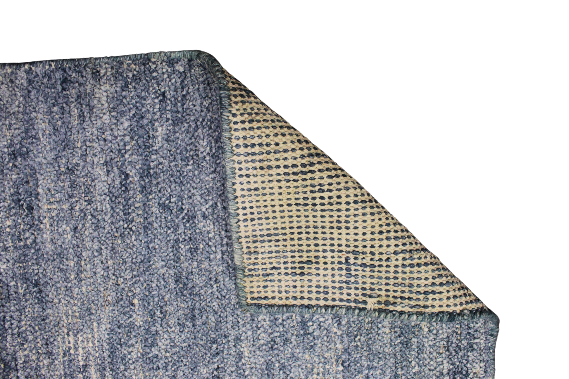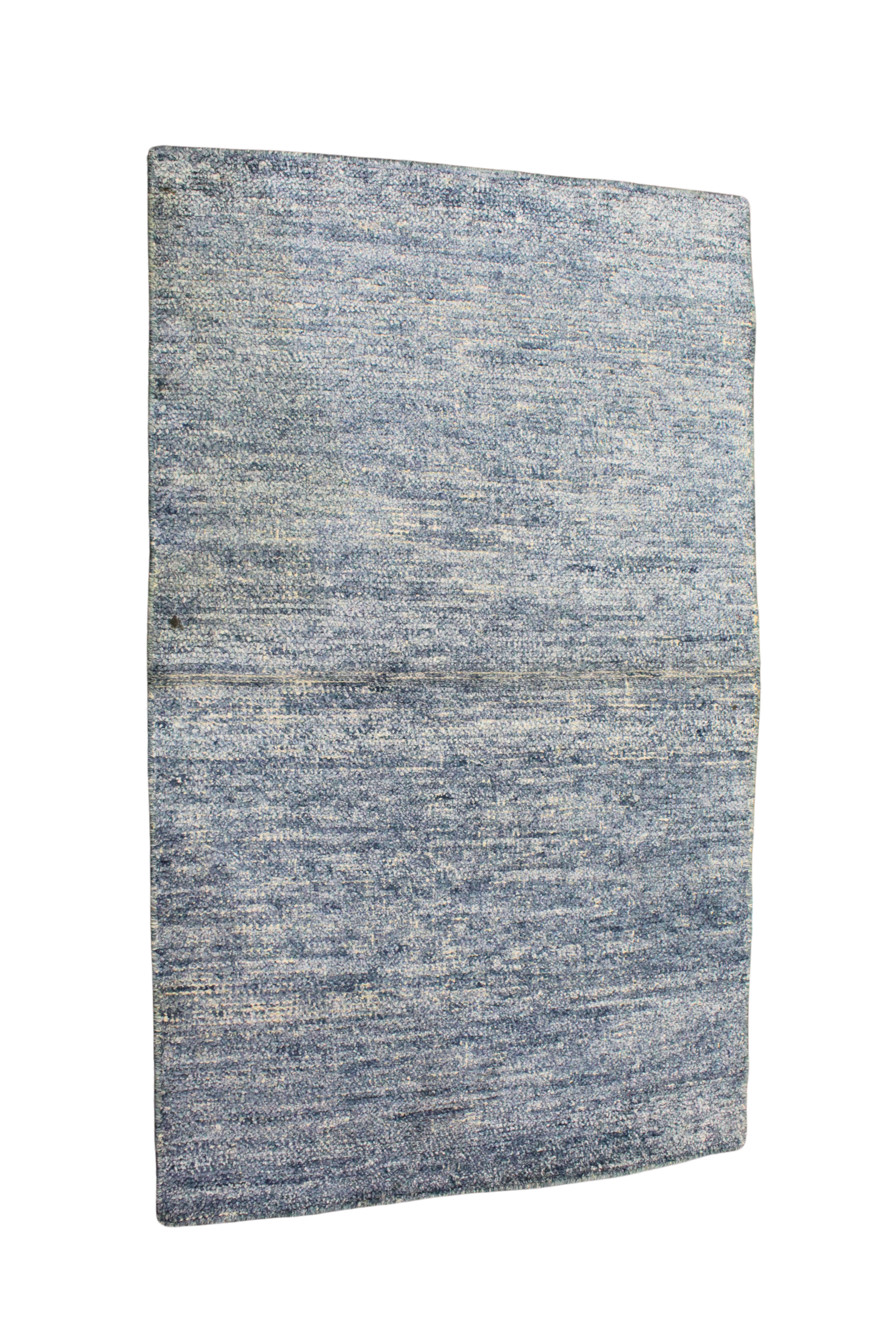 Rug 37931 offers contemporary minimalism in a sophisticated form. Handwoven in India and measuring 3 x 5, this modern rug features a tonal blue palette with subtle variations in shading that create a rich, textured appearance. The hand-knotted construction brings a tactile elegance, while the absence of ornamentation allows the natural beauty of the wool and the dyeing technique to shine.