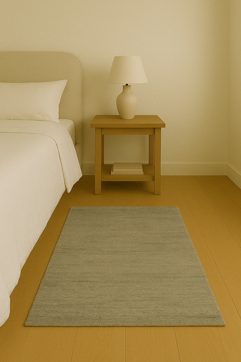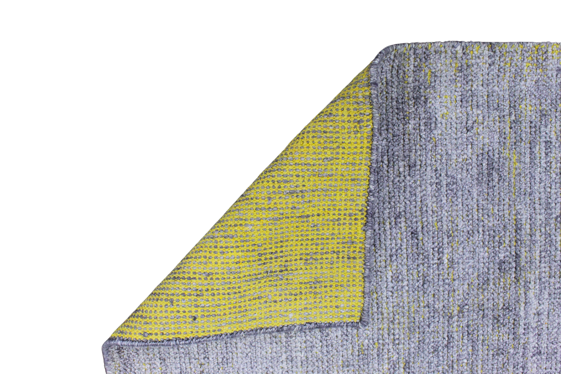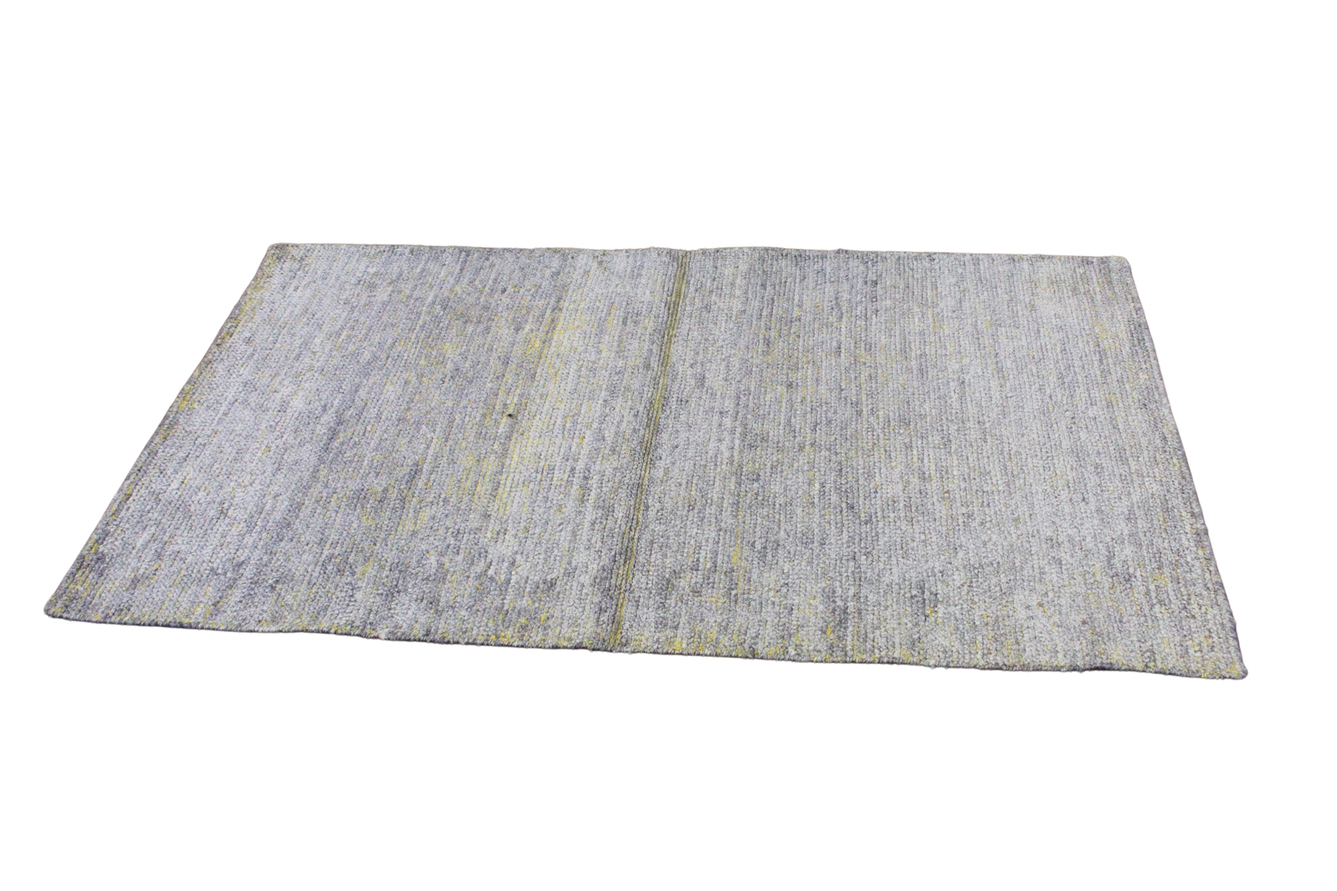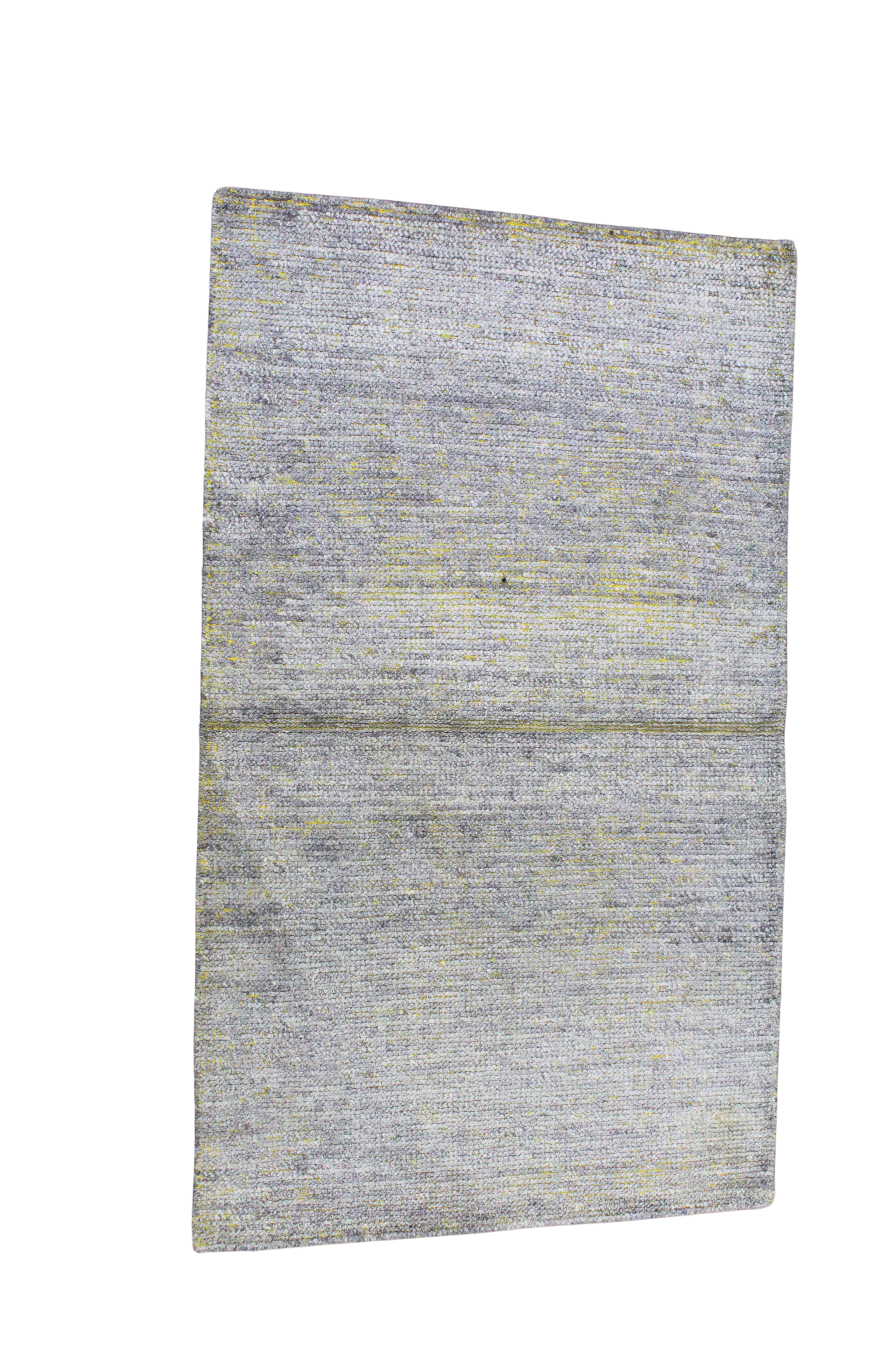 This sleek 3x5 ft modern rug from India presents a refined fusion of minimalism and texture. Crafted with subtle precision, its handwoven surface features a soft blend of cool slate gray tones with faint undertones of olive and pale gold, adding quiet depth to any contemporary interior. The texture is organic and nuanced, bringing a sense of calm sophistication to entryways, small seating areas, or home offices.