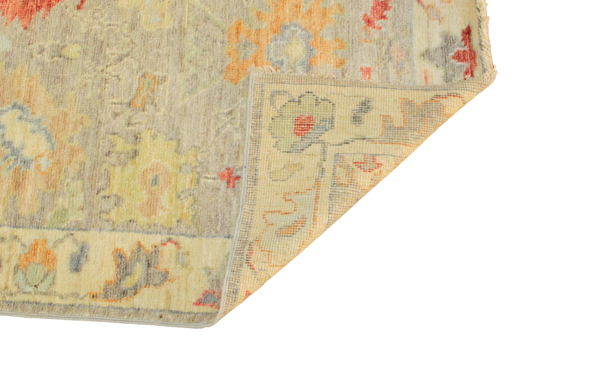 Unfolding nearly 20 feet in hand-knotted artistry, this Afghan Oushak runner (3x19.6 ft) is a showpiece of quiet grandeur. Its soft steel blue ground is enriched with rustic botanical medallions in muted tones of coral, apricot, ivory, and golden taupe. The rhythm of the floral motifs moves down the length like a gentle cadence, enclosed by a narrow border that lends just the right amount of structure without distracting from the airy design.
