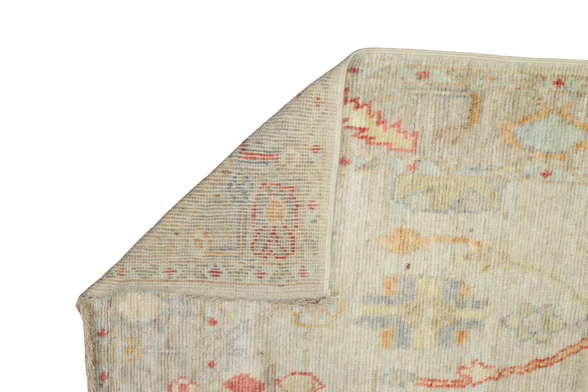 Design: Oushak scattered floral with tribal elements