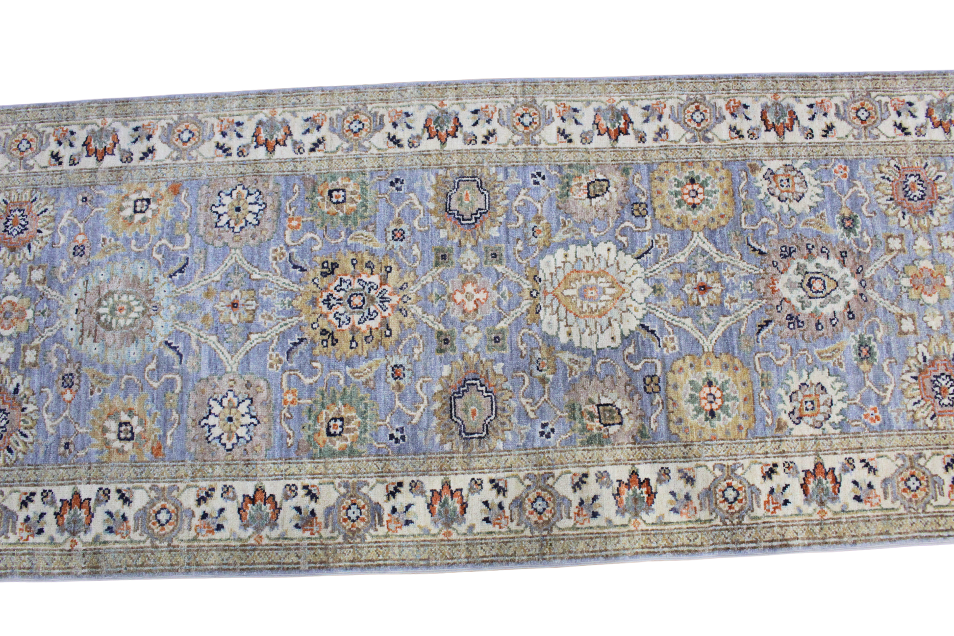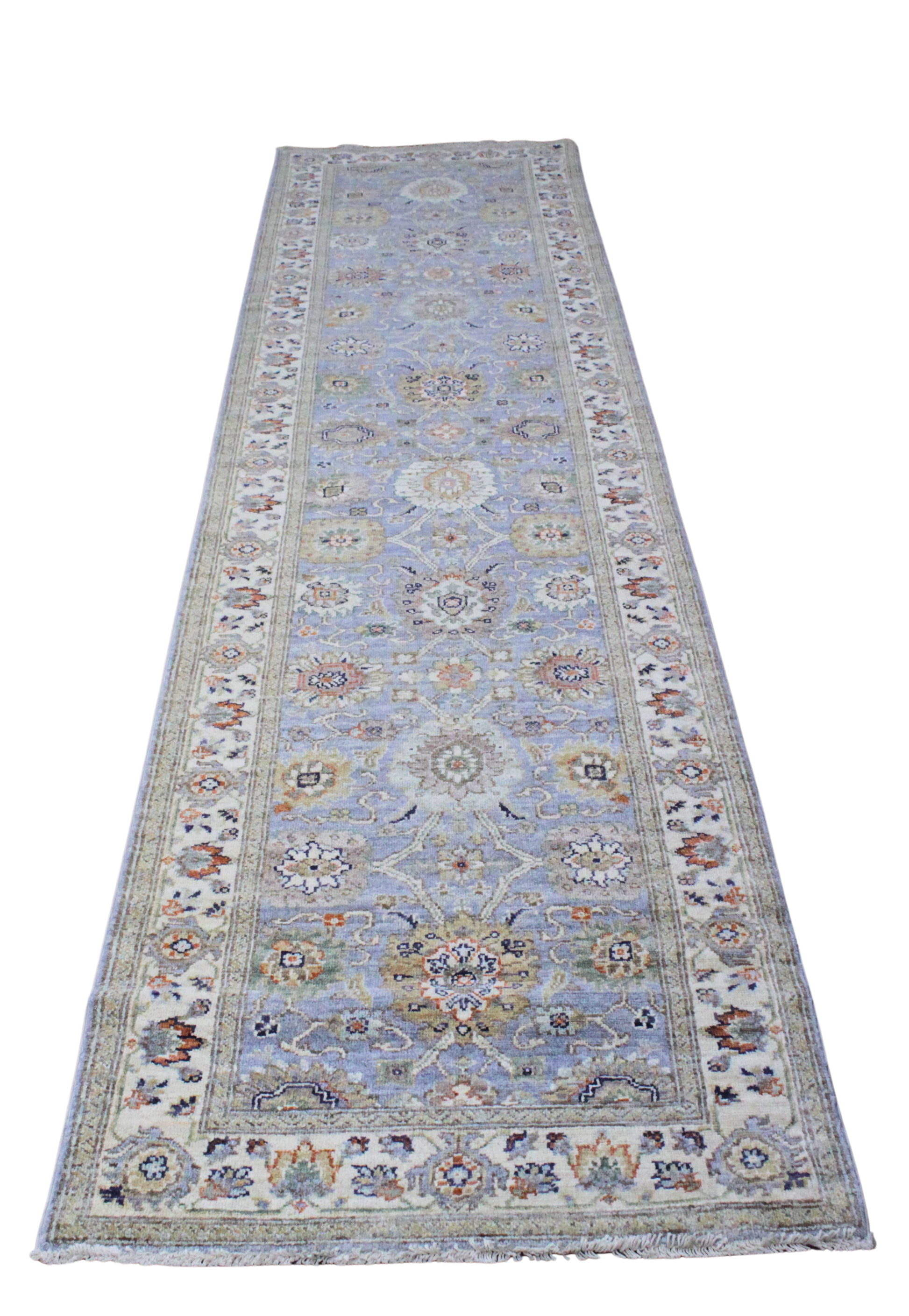 Framed by a delicate border of blossoming motifs, this piece exudes understated charm and would be a refined addition to a long corridor, gallery-style hallway, or even a grand dressing space. Its mellow tones and soft pile lend it both visual poise and a warm underfoot experience.