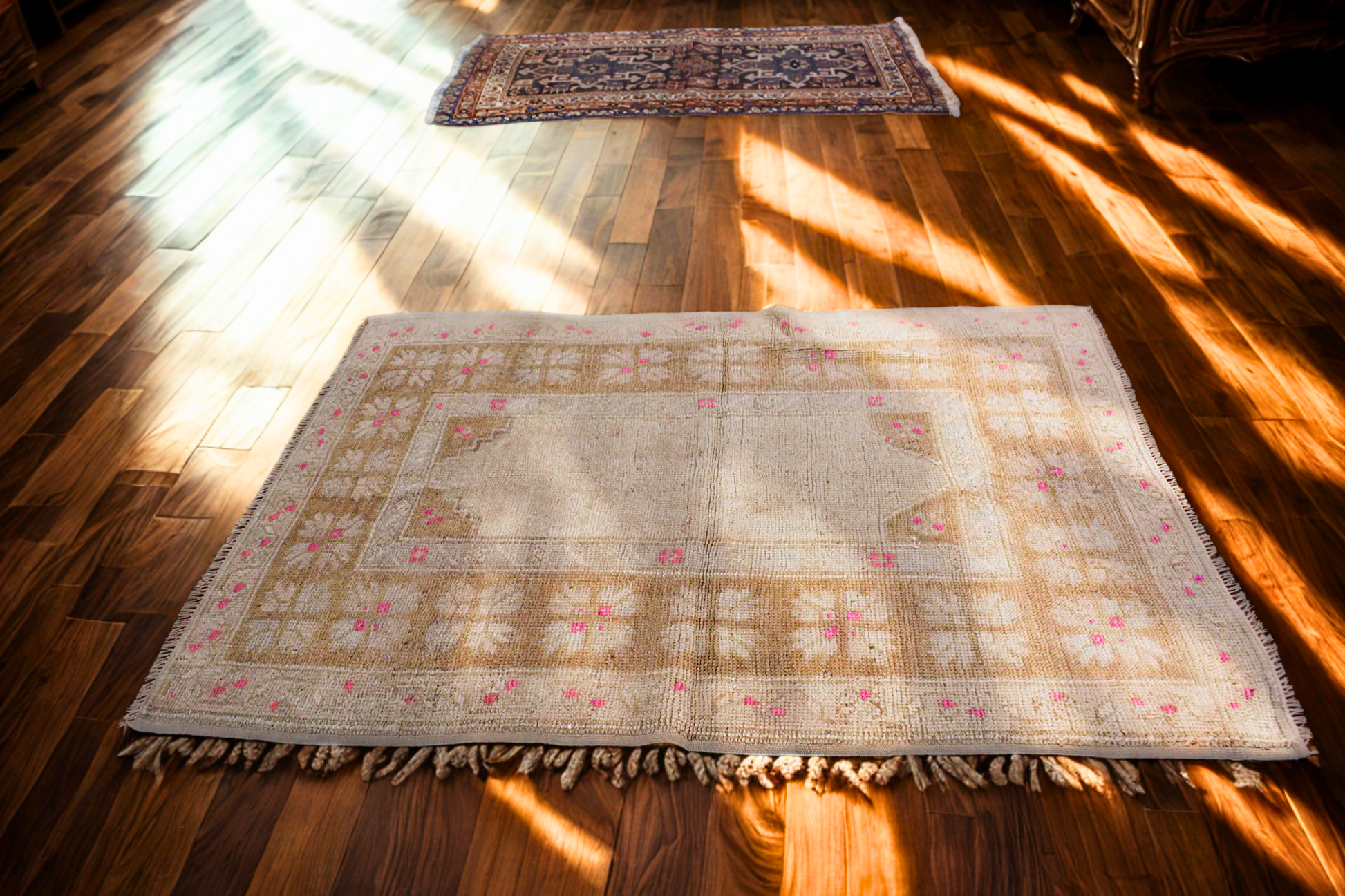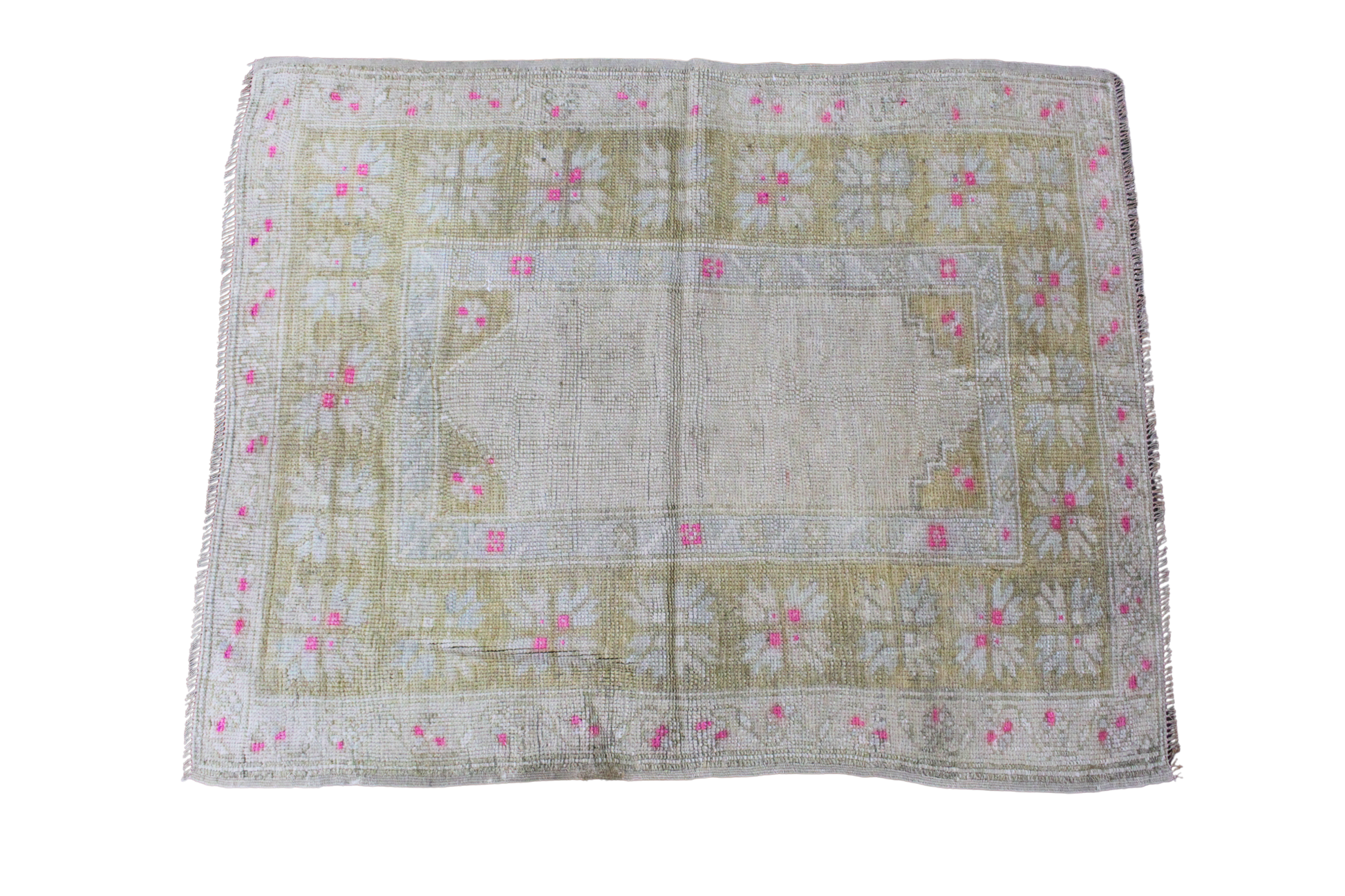 Aged to perfection, this antique Oushak offers a graceful accent for entryways, beside a bed, under a vanity, or layered in a reading nook. Its compact size and gentle palette make it a rare and versatile piece—ideal for adding soul to light, neutral spaces or balancing more contemporary interiors with a touch of history.