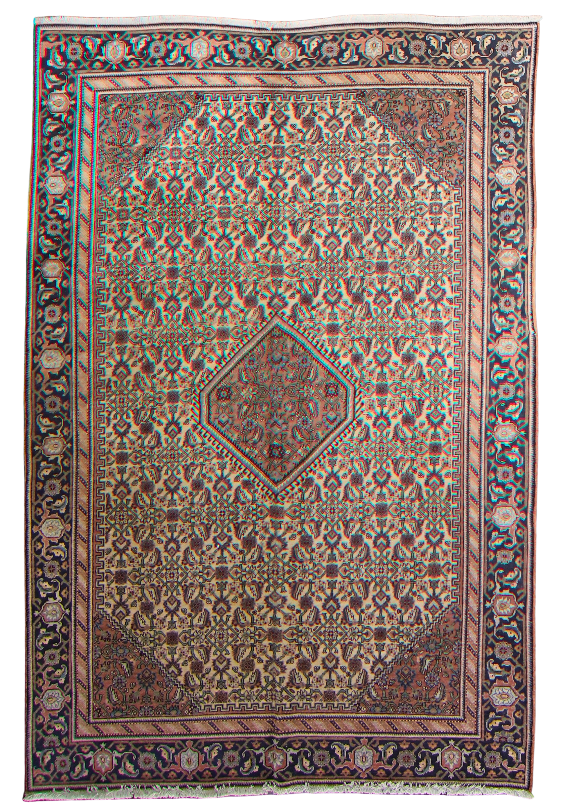 Design: Central diamond medallion with dense field pattern and corner motifs