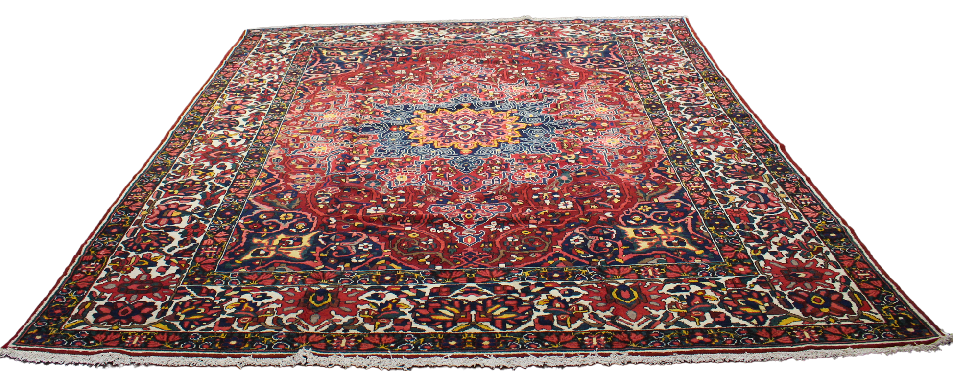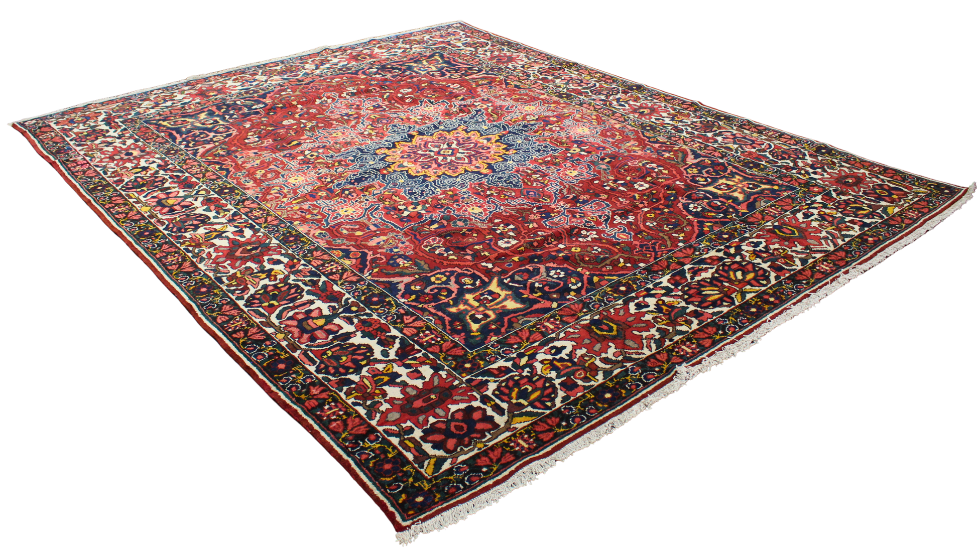 Commanding Presence - Antique Bakhtiari Rug in Crimson, Navy, and Ivory (10.6 × 13 ft) - 1716