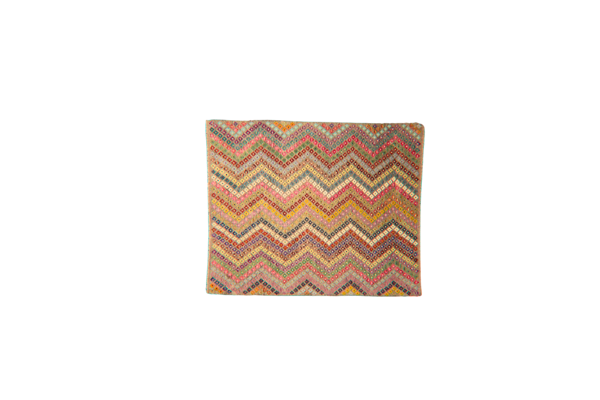 Colors: Multicolor chevron pattern on a neutral base (pinks, green, gold, ivory, blue, terracotta)