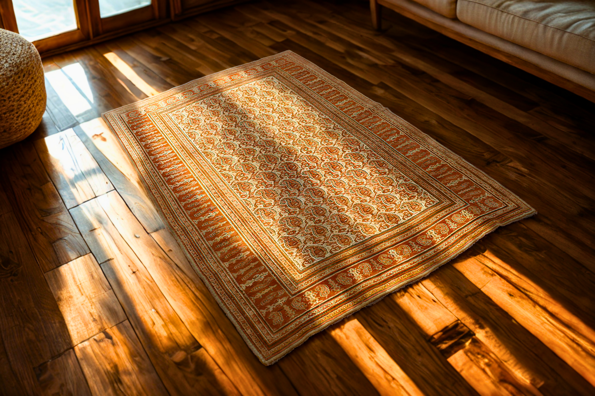 Renowned for their tight weave and sophisticated precision, Seneh rugs like this one are prized for both their beauty and durability. This piece would make a striking statement in a study, entryway, or under a coffee table, bringing a refined historical character to the space.