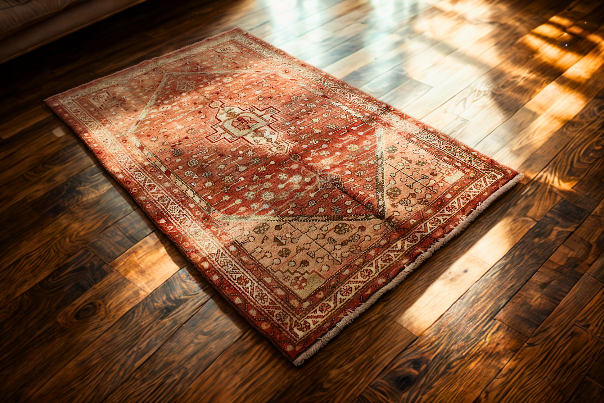 Rustic Geometry — Antique Hamedan Rug from Persia (4.4 × 7 ft)