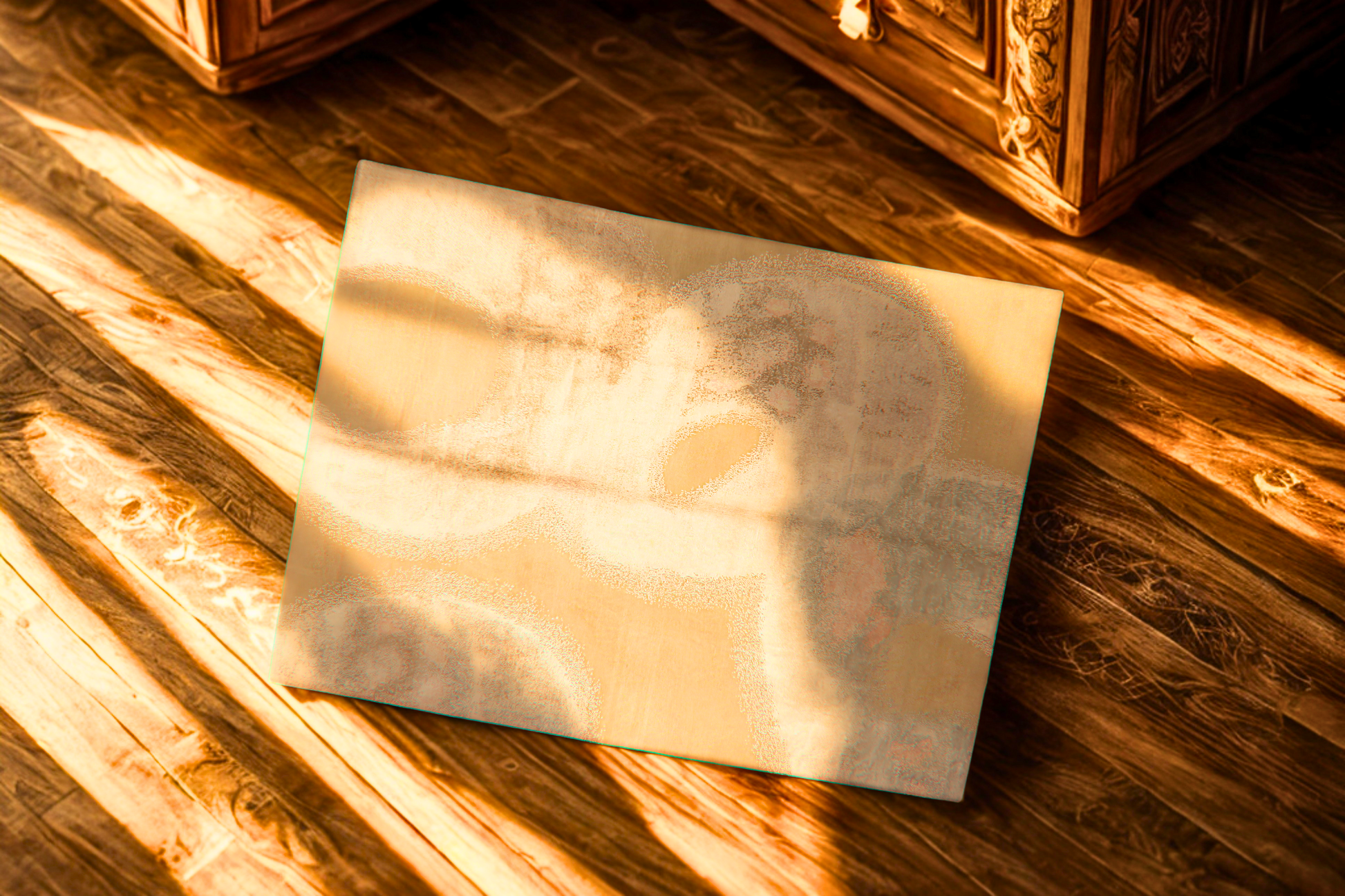 The delicate contrast between the soft hues and dynamic forms gives this piece an ethereal modern elegance, ideal for artistic, light-filled spaces that favor subtle expression over sharp statements.
