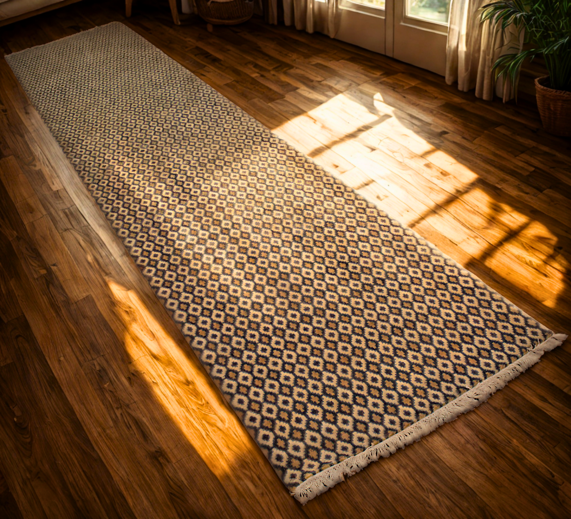 Geometric Simplicity — Afghan Oushak Runner (3′ × 13′)
