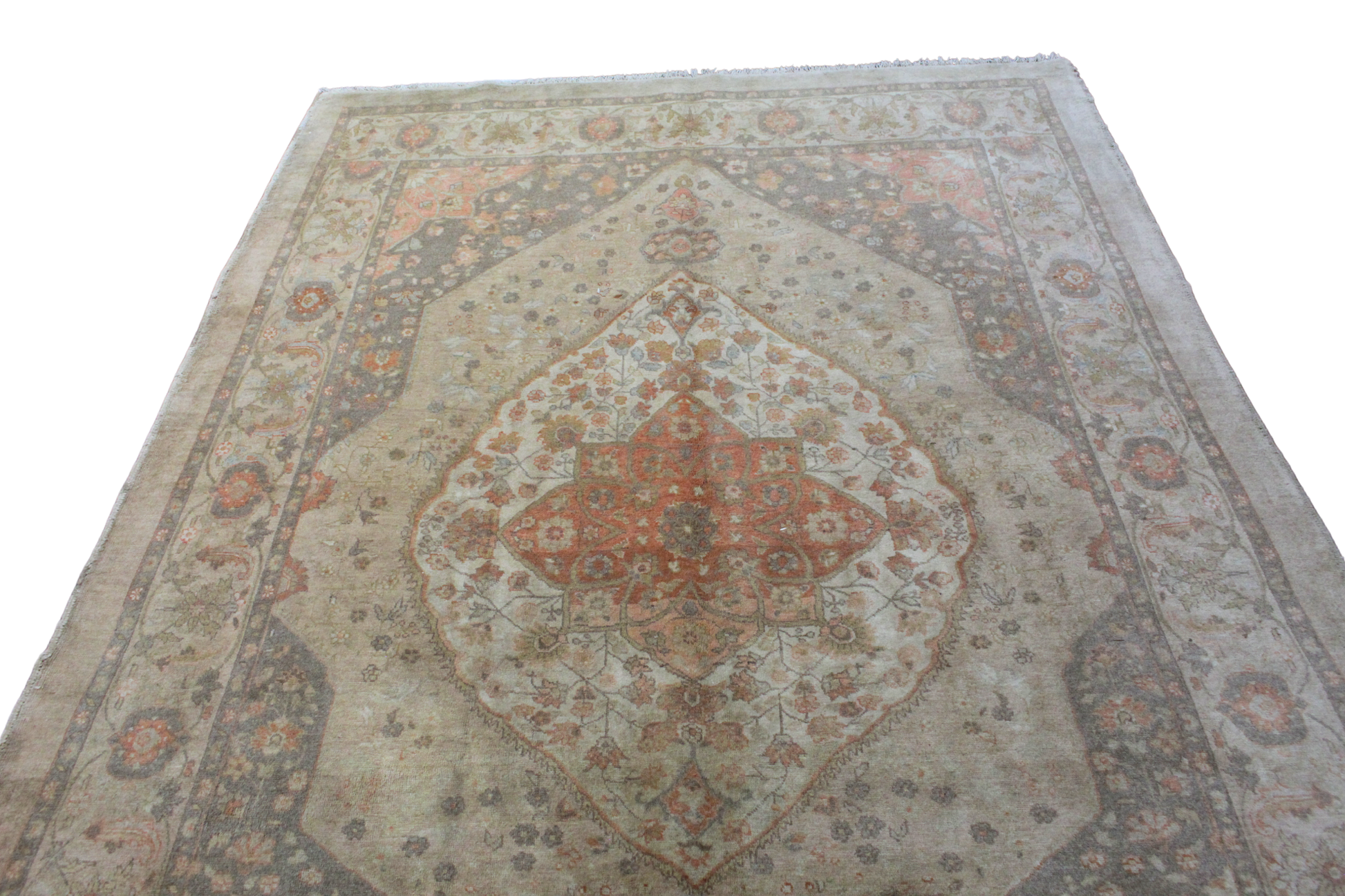 Timeless Grace in Soft Earth Tones — Tabriz Rug (6.3 × 9.1 ft)