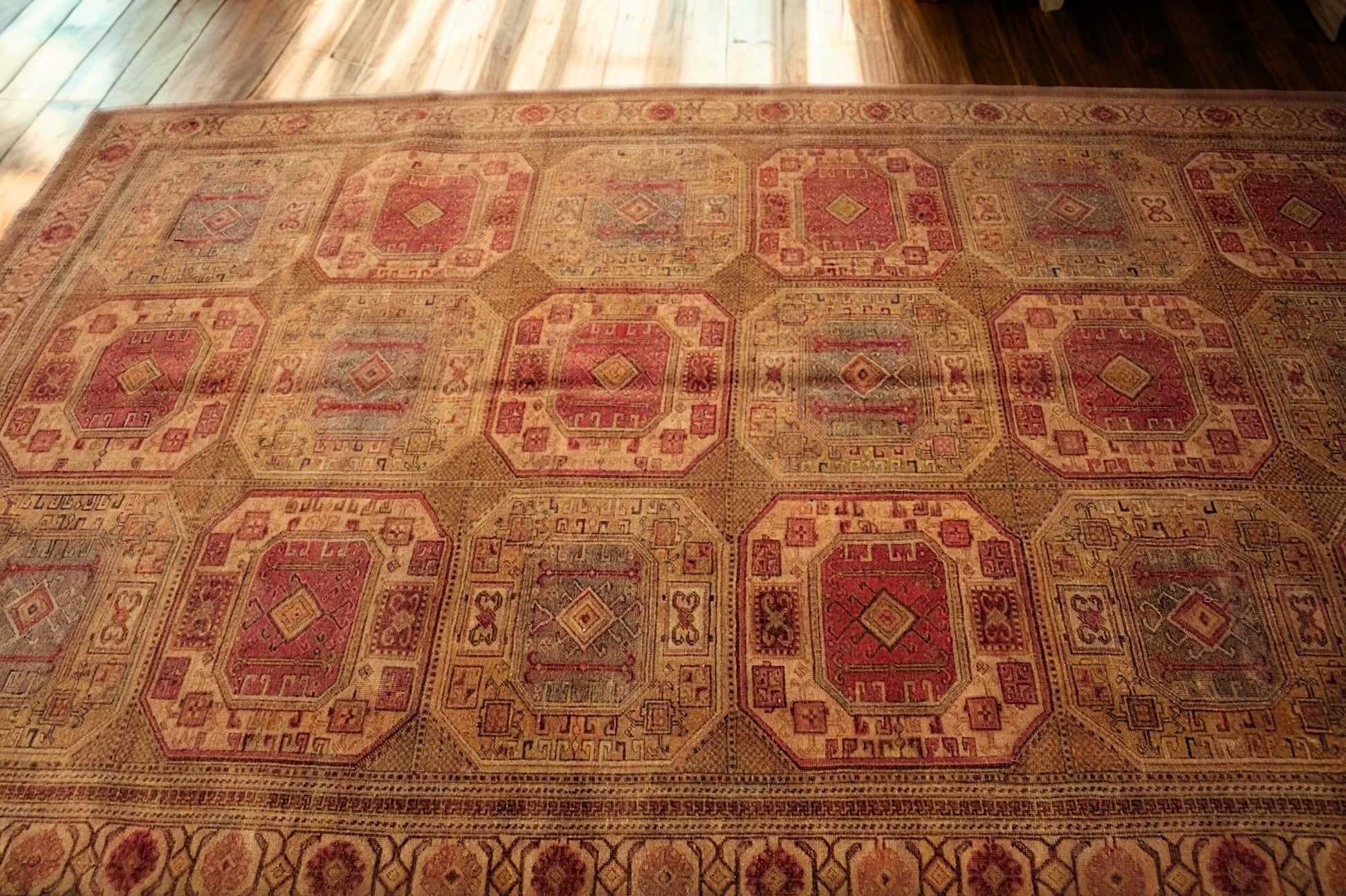 Its weathered finish and subdued palette lend an antique look perfect for interiors that lean warm, rustic, or transitional. Ideal for anchoring dining rooms, living spaces, or serene bedrooms, this rug evokes the timeless craftsmanship of Turkish weaving.