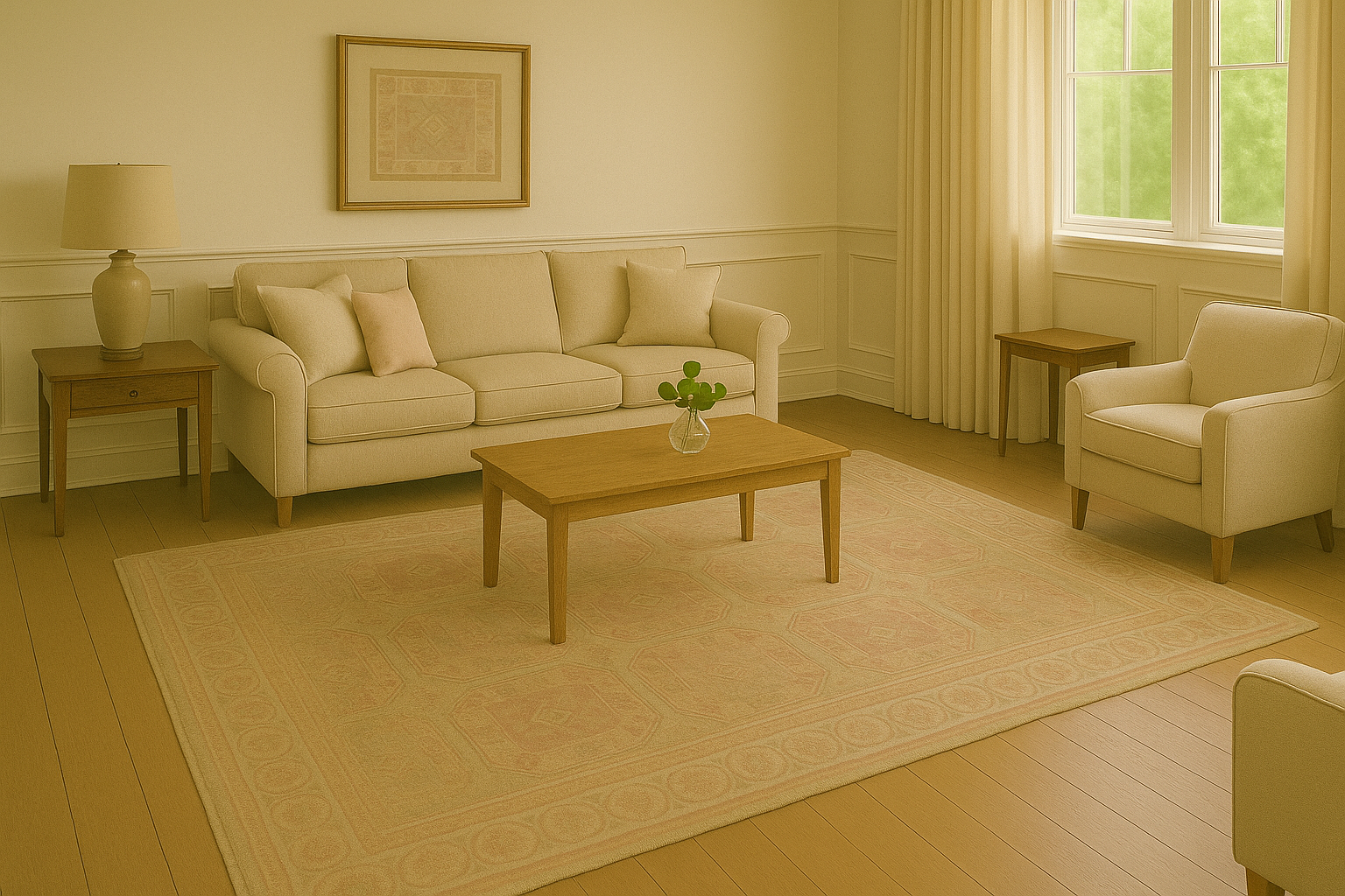 Soft Geometry — Faded Turkish Oushak Rug in Rose and Sand (6.5 × 10.2 ft)