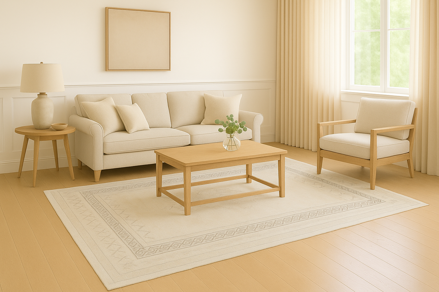 Subtle Geometry — Faded Turkish Oushak Rug in Soft Neutrals (5.8 × 10.4 ft)