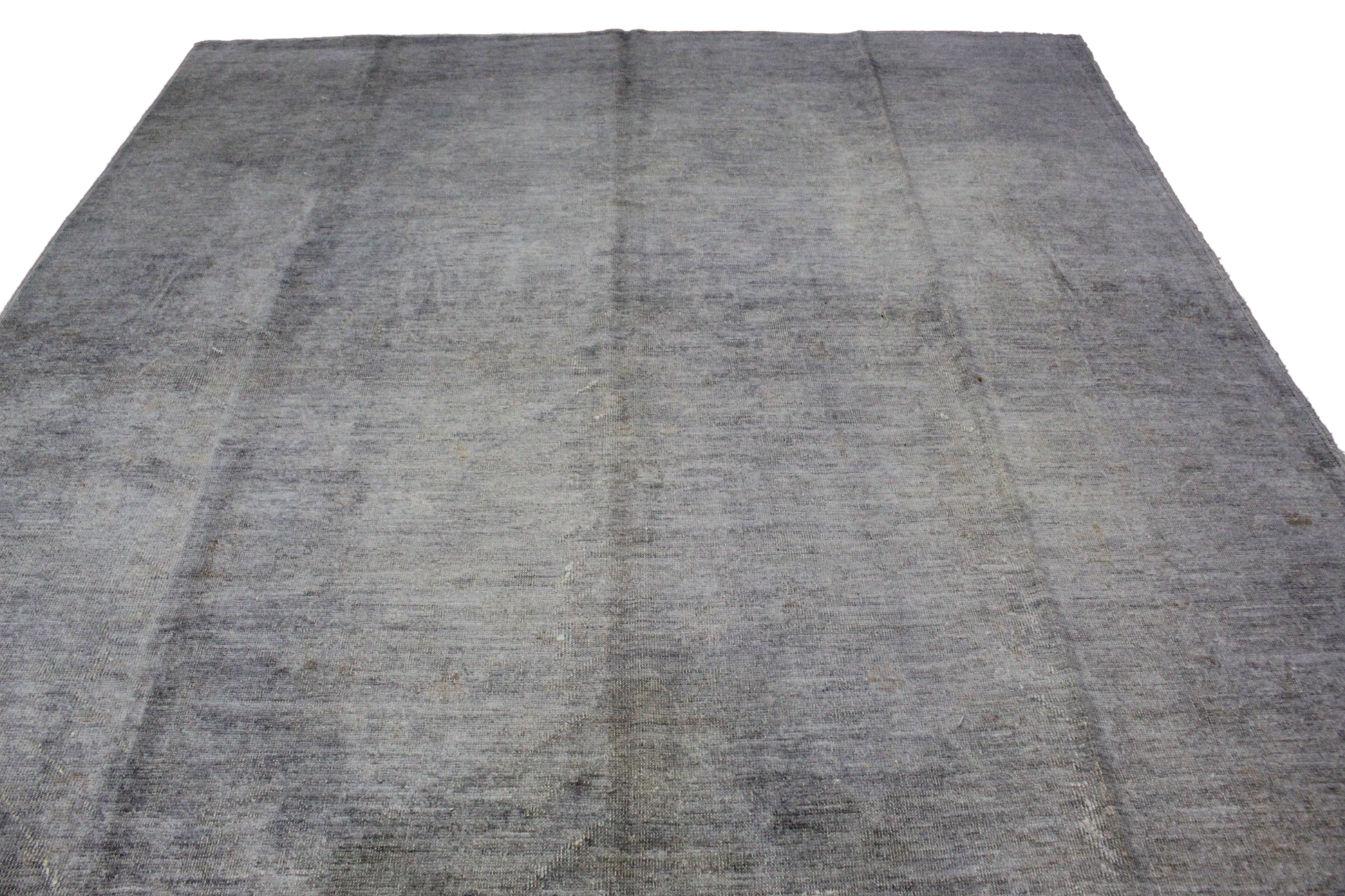 Minimalist in form but rich in texture, this Turkish Oushak rug (9 × 11.10 ft) offers a strikingly modern take on traditional craftsmanship. Hand-knotted with wool, the rug presents a nearly solid field in a washed charcoal tone with subtle undertones of gray-blue and slate. The soft abrash and tonal variations create quiet movement across the surface, giving it a sophisticated, lived-in look.