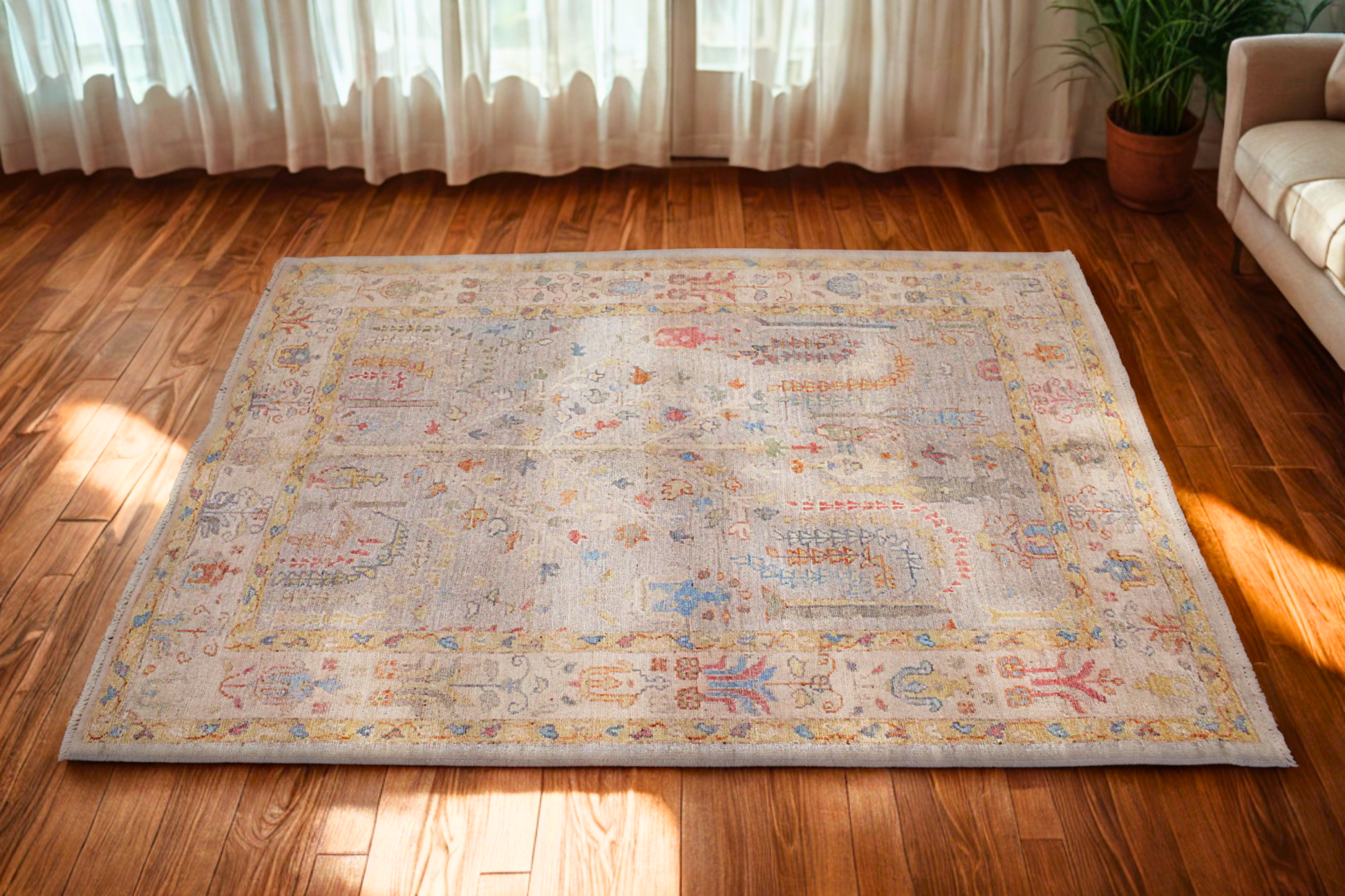 Pastel Garden — Light Afghan Oushak Rug with Soft Multicolor Detailing (5.1 × 6.11 ft)