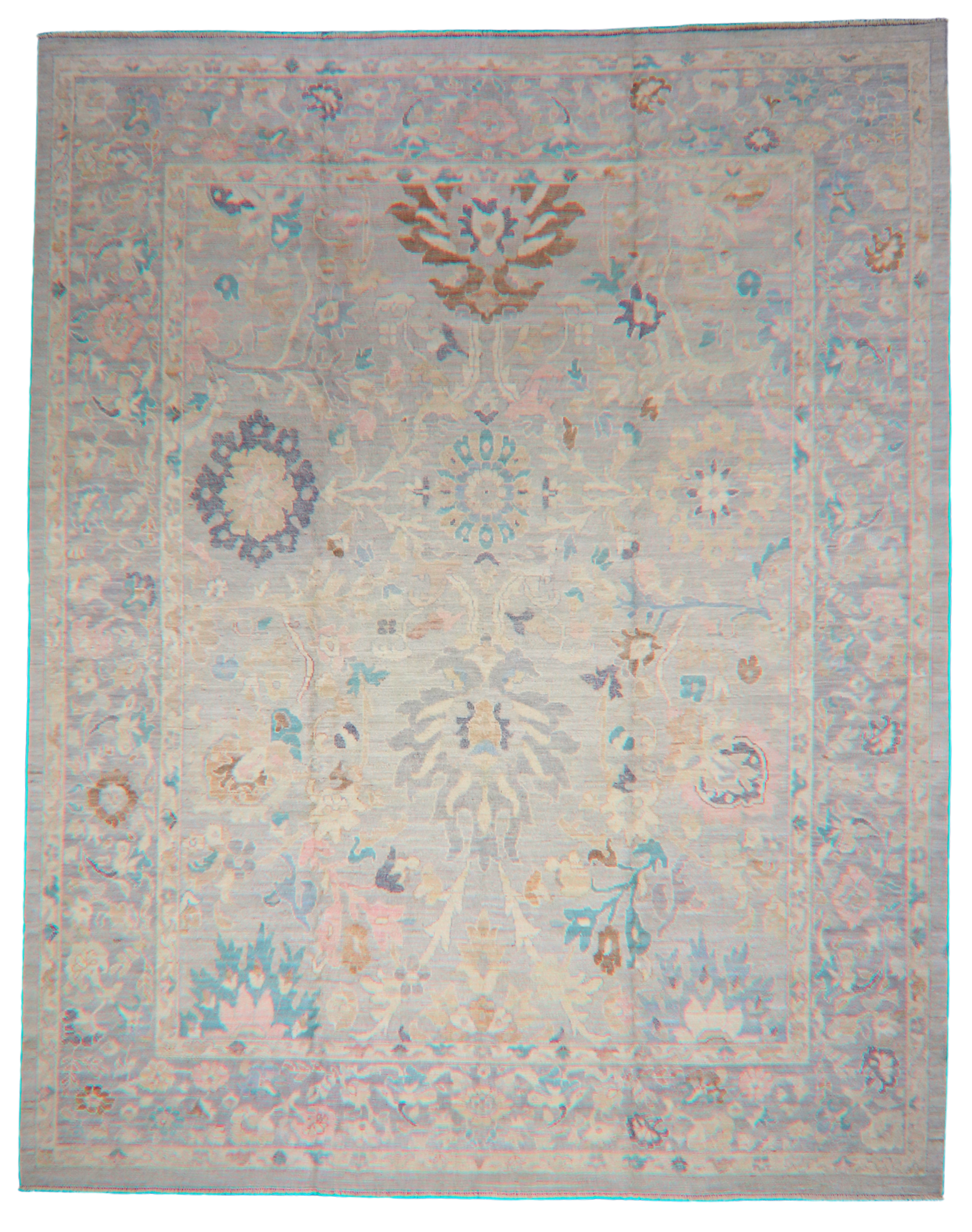 Pastel Bloom - Oushak Afghan Rug (10.10 × 13.8 ft) - 2776