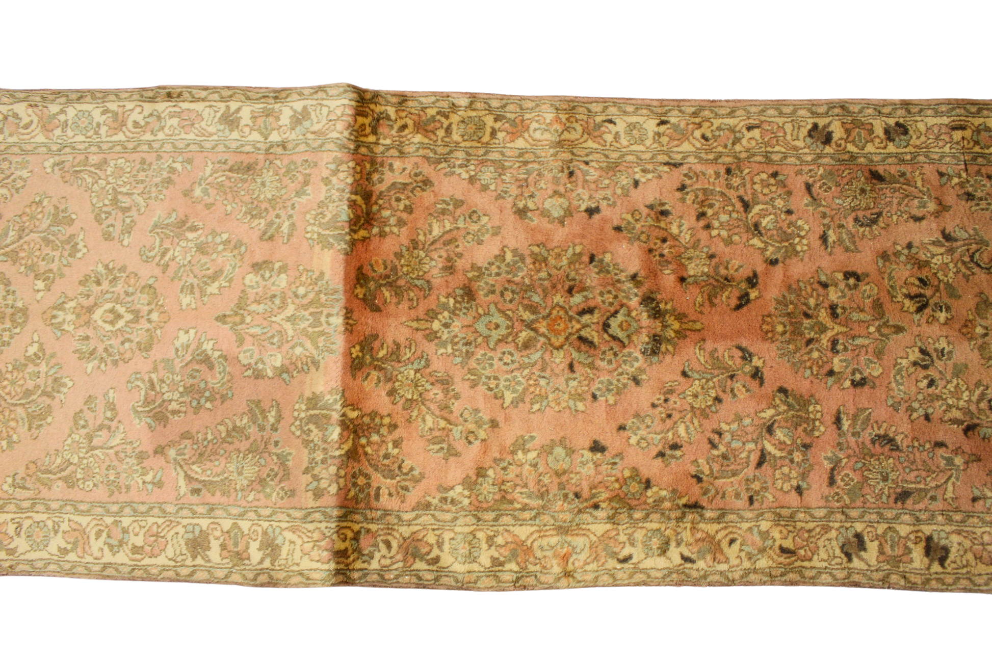 Despite its length, the runner maintains impeccable balance and rhythm across its full body — a feat achieved only through the skilled hands of seasoned Persian weavers. The rug's saturated natural dyes and age-softened wool create a warm, welcoming patina that invites admiration. Ideal for long hallways or stair runners in traditional or transitional homes.
