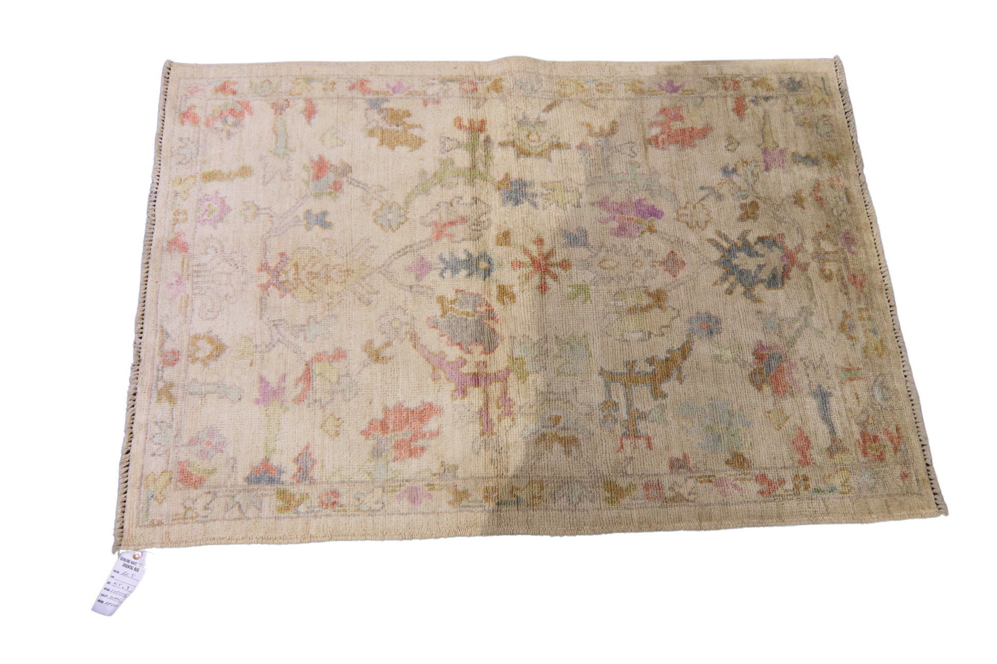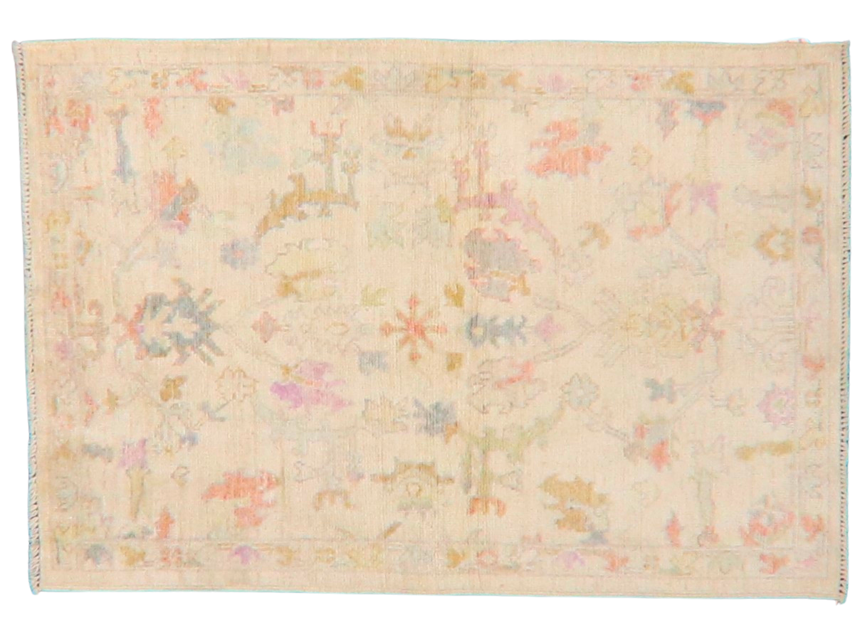 Whispers of Pastel – Hand-Knotted Afghan Oushak Rug in Faded Tones (3 x 4.5 ft)