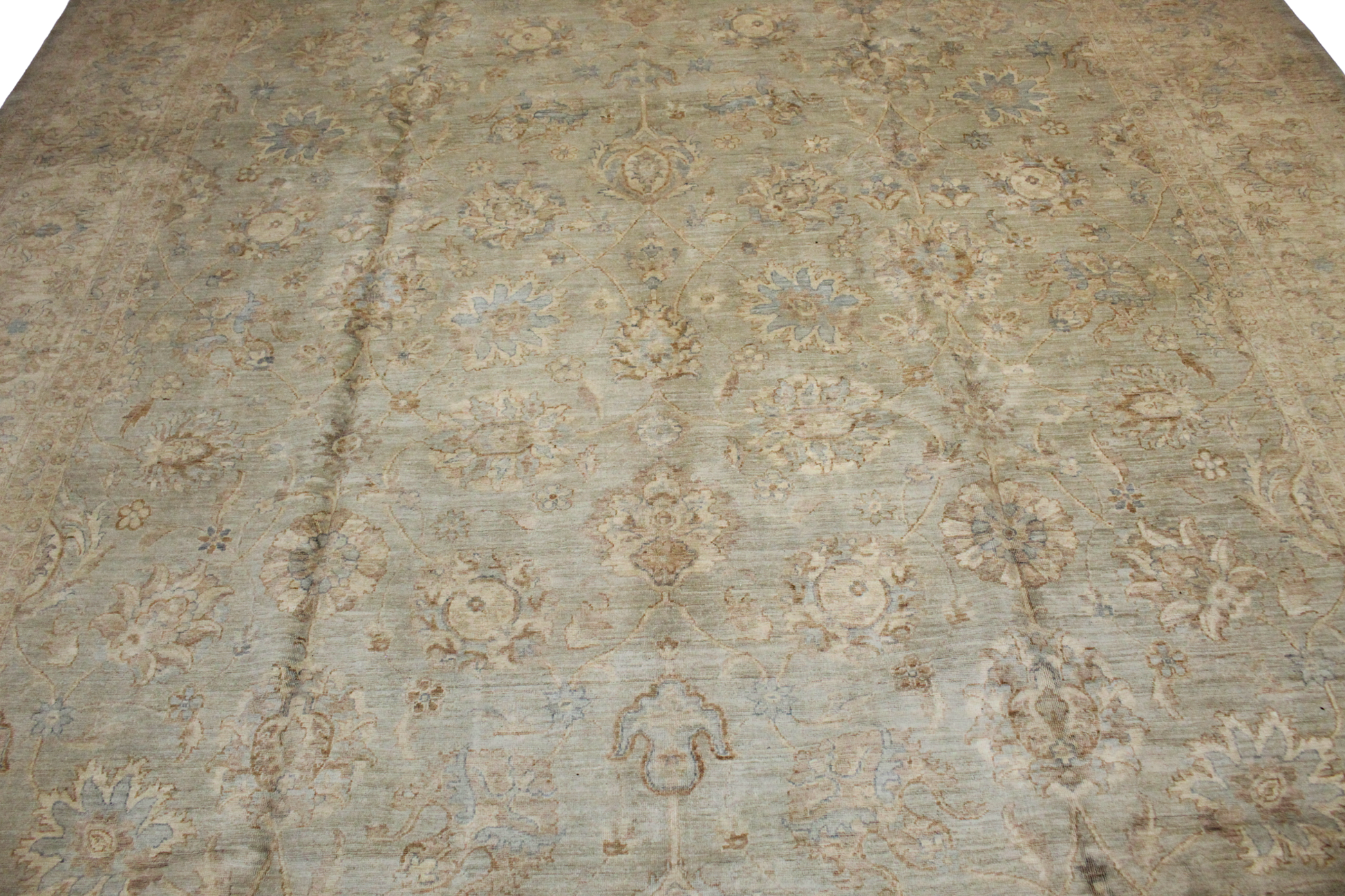 Delicately rendered in a palette of soft mist blue and pale sand, this fine Afghan Tabriz rug offers a restrained elegance ideal for neutral or monochrome interiors. The design features a densely woven allover floral pattern with stylized rosettes, vines, and palmettes, executed with exquisite precision.