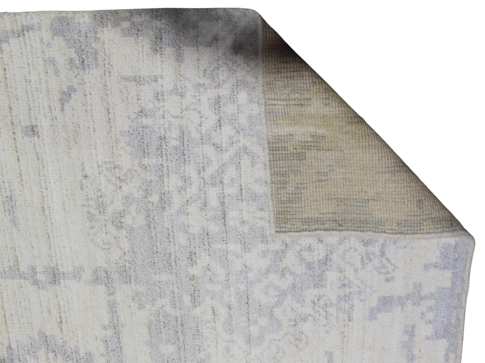 The rug features subtle geometric medallions woven in a tone-on-tone blend of ivory and misty gray, giving it a minimalist sophistication while still preserving the handwoven artistry of Afghan craftsmanship. The transitional palette creates a gentle, calming effect that can harmonize with both classic interiors and contemporary settings.