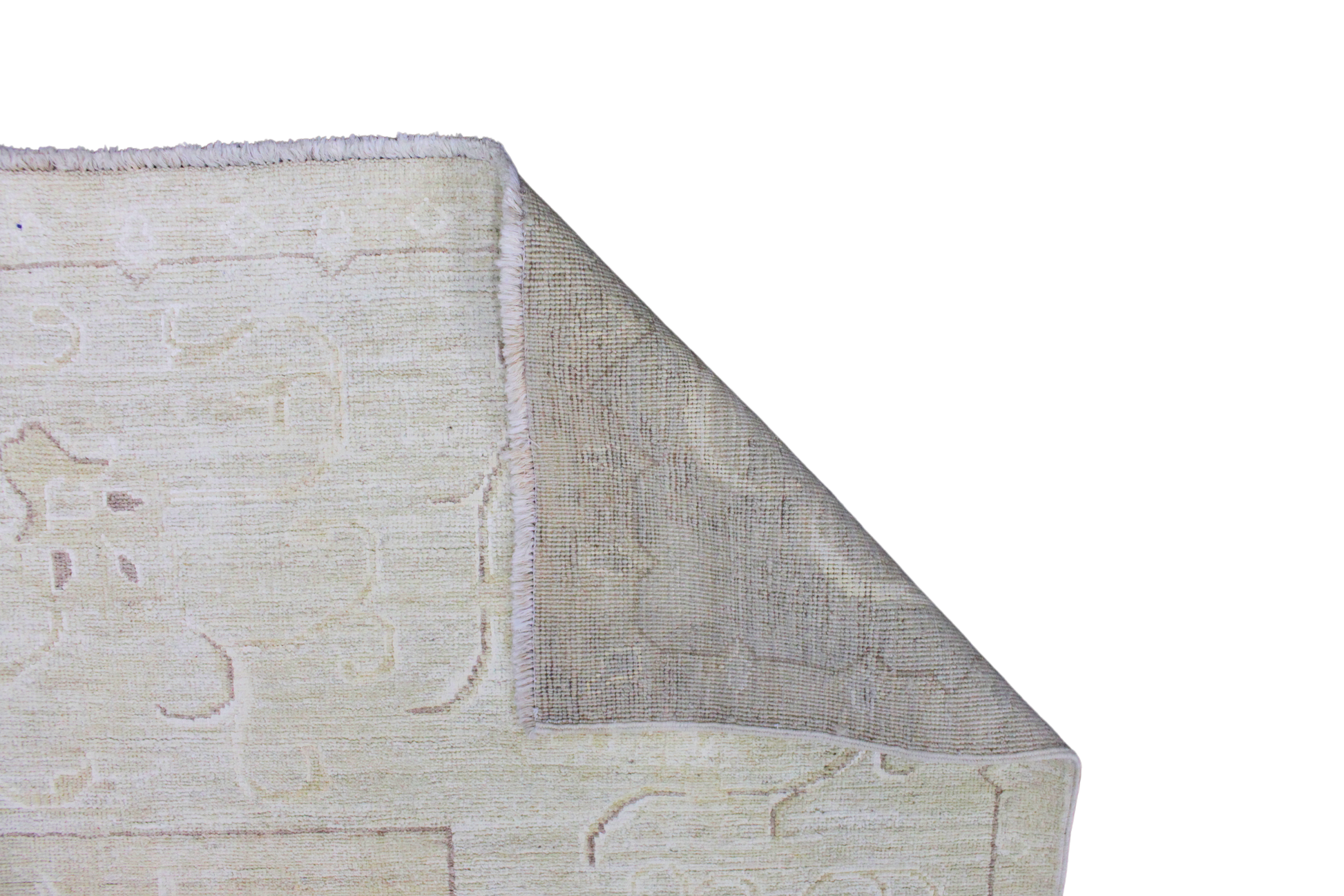 Hand-knotted with care, this rug blends classic Oushak motifs—floral palmettes, curling vines, and geometric cartouches—with a contemporary monochrome sensibility. Ideal for living rooms, bedrooms, or transitional spaces where softness and simplicity are the goal.
